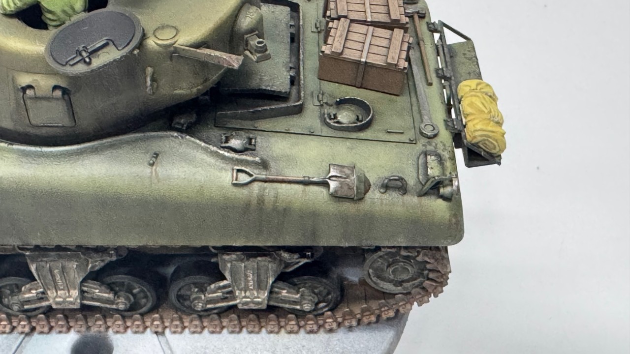 슈툼타이거와 같은 위장색과 달리 슈퍼셔먼과 같은 단색차량의 경우 색감이 쉽게 단조롭게 보여질 수 있는 부분을 감안하, 이스라엘 건국 당시 유럽 각지에 방치되었던 셔먼을 들여왔었다는 사실을 근거로 개인적인 뇌피셜을 적절하게 조합, 포탑색상은 전형적인 미군의 올리브드랍2, 차체는 러시아 그린으로 도색했습니다.