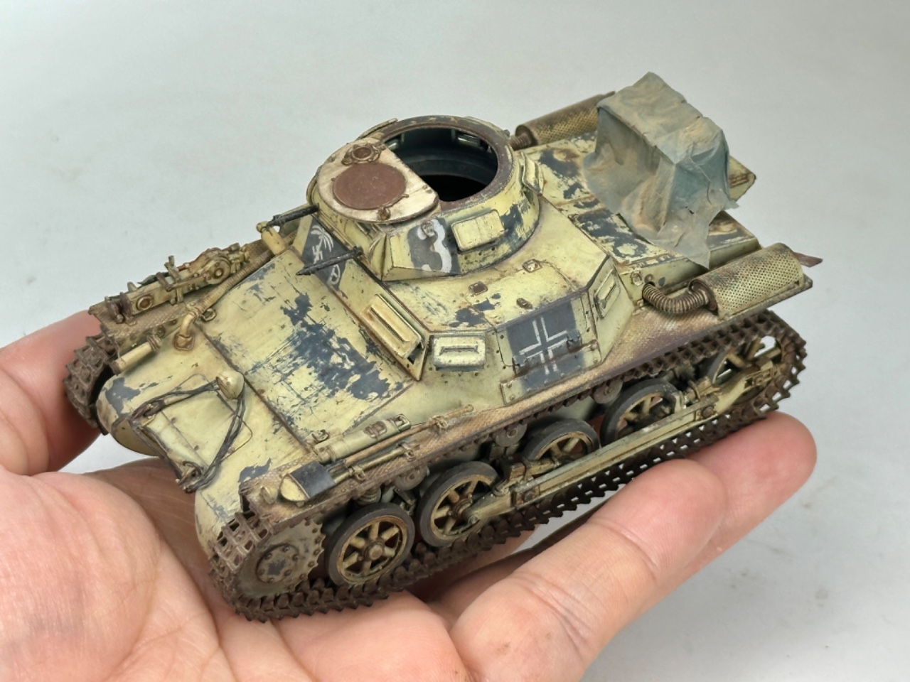 타콤의 1호전차 A형입니다 아프리카군단으로 도장했고 언제나 그랬듯이 미그 아크릴 dunkelgrau기존색에 dunkelgelb를 사막색으로 설정하여 도장했습니다 까짐표현은 heavy chipping을 적용했습니다