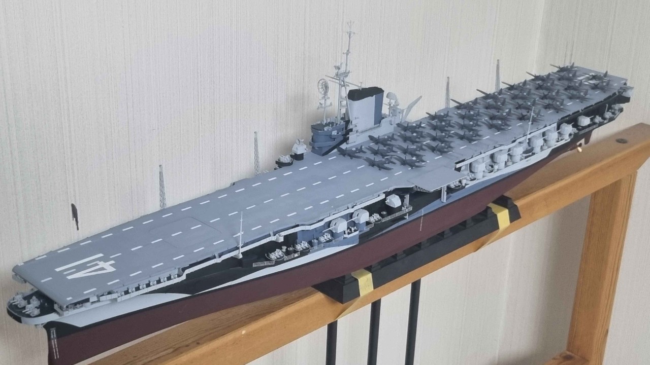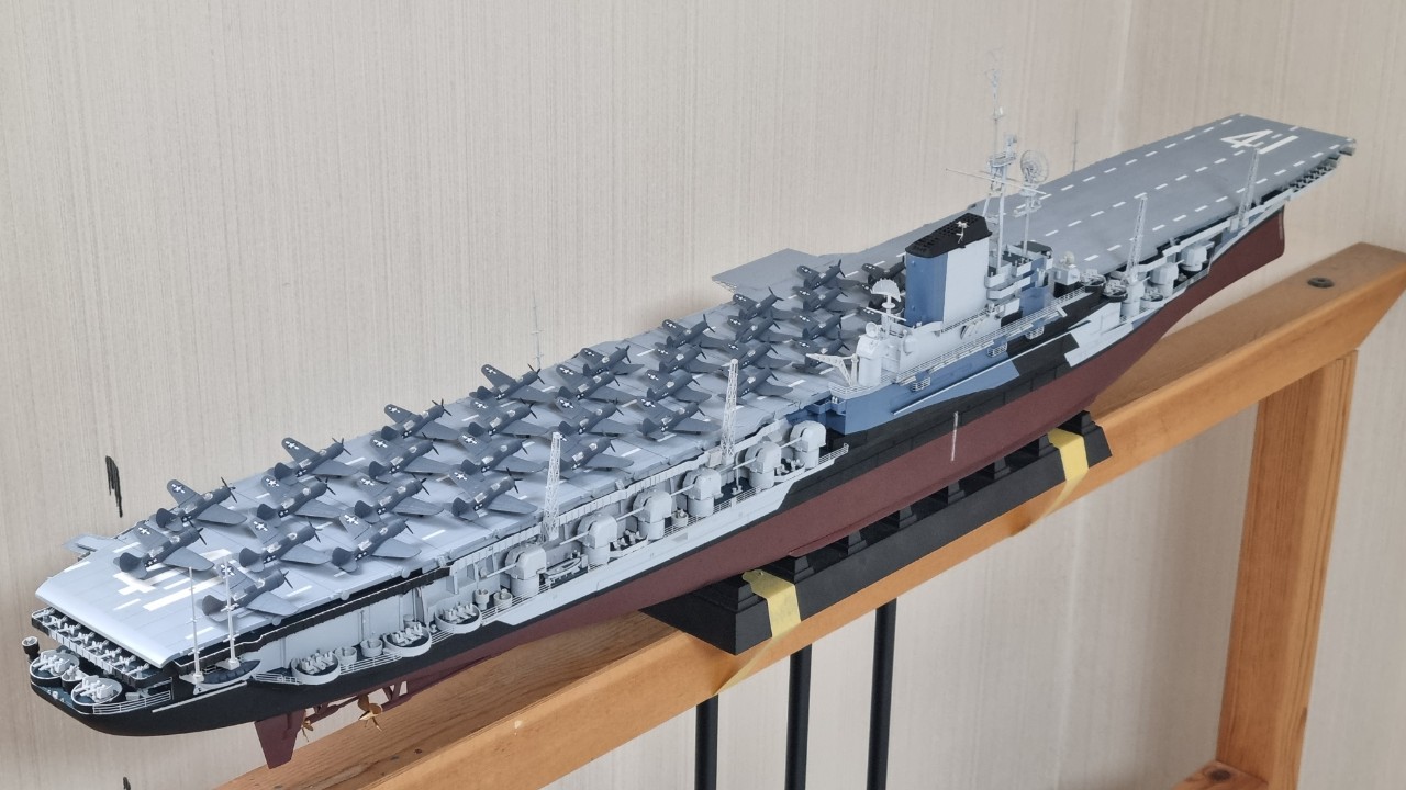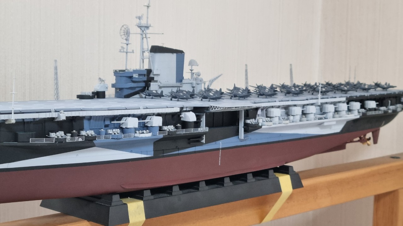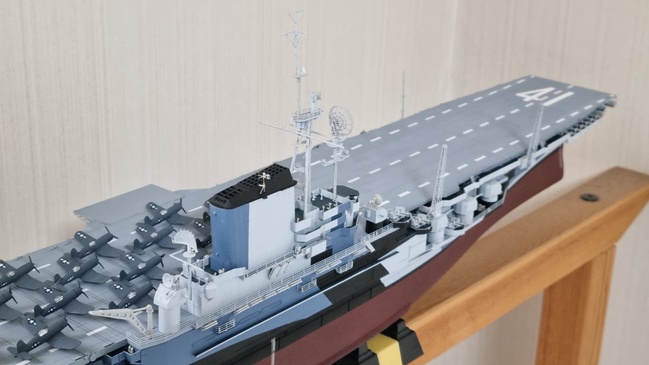 함재기 구성은 f4u 콜세어 전투기 16대에 sb2c 헬다이버 폭격기 18대 구성으로 만들었습니다.
