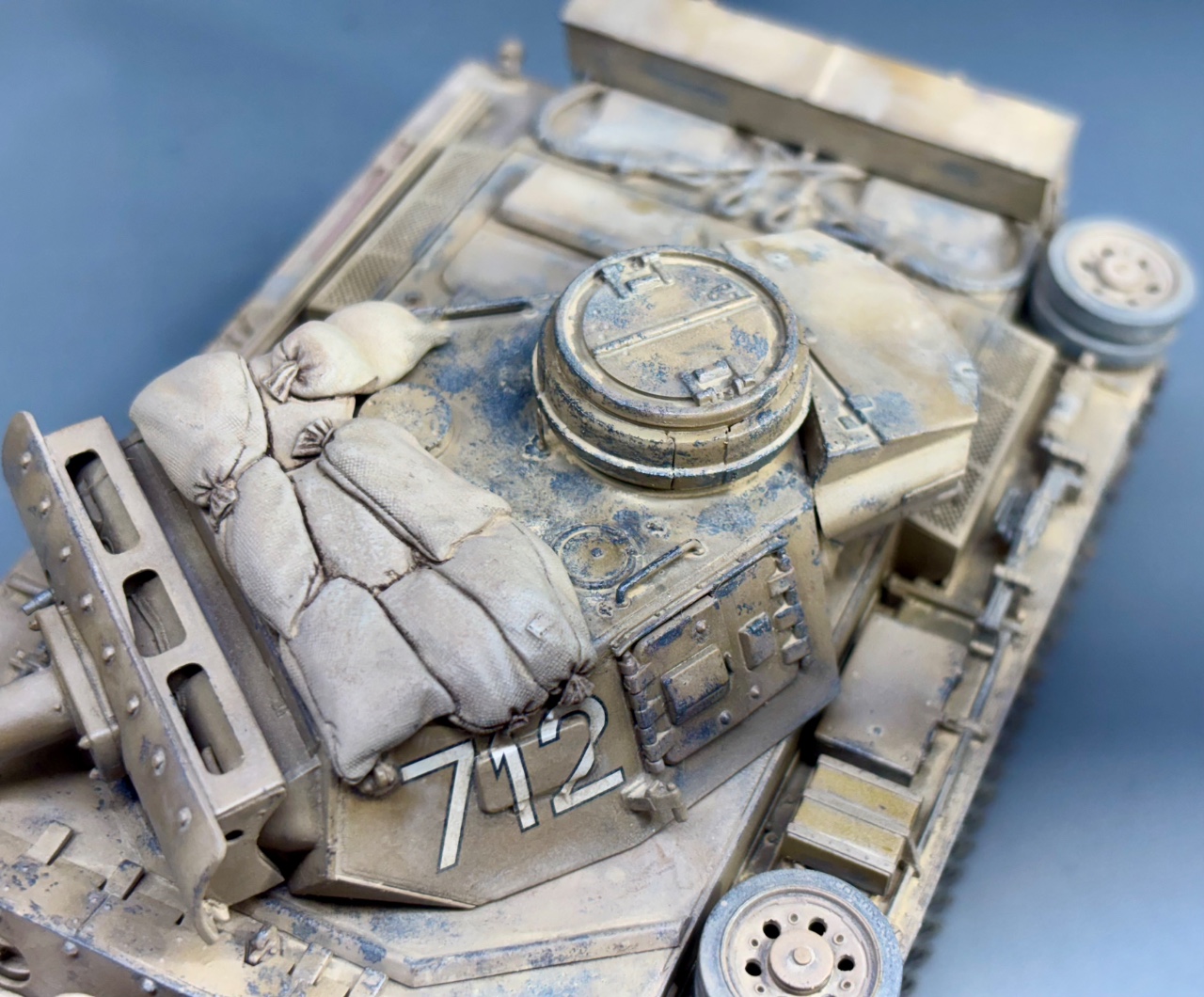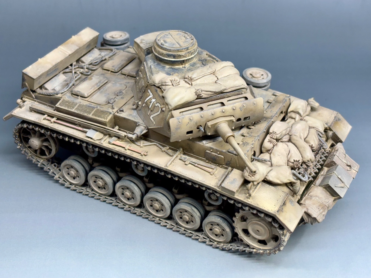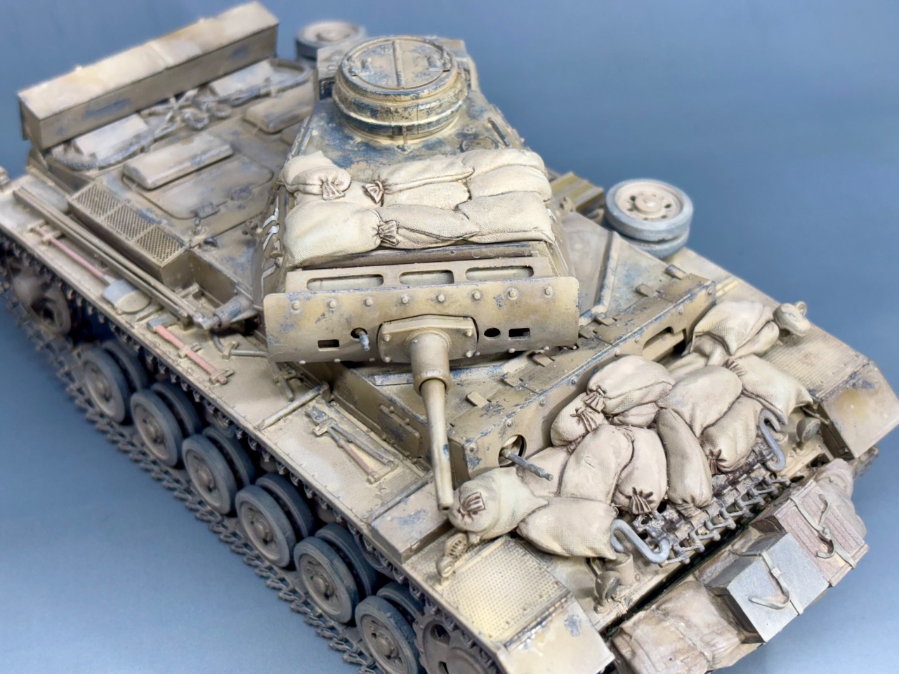 아카데미 키트에 팬져아트 모래주머니를 올려놓았습니다. 도색은 타미야 아크릴입니다.