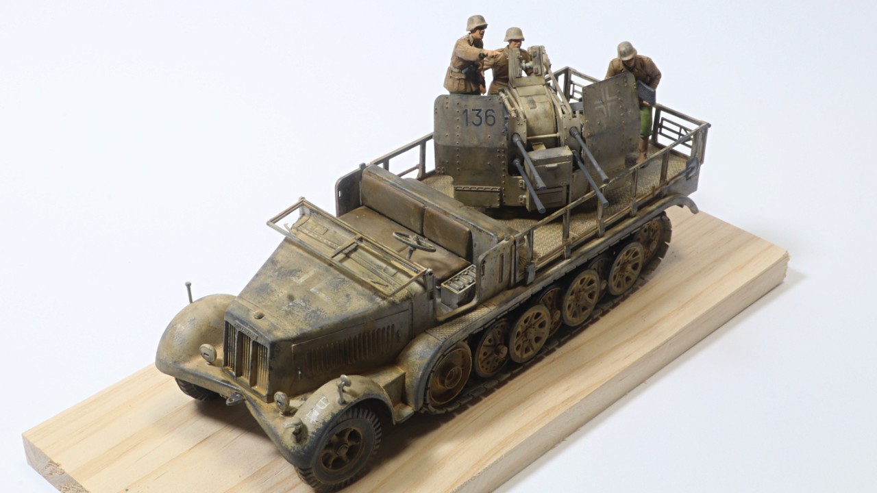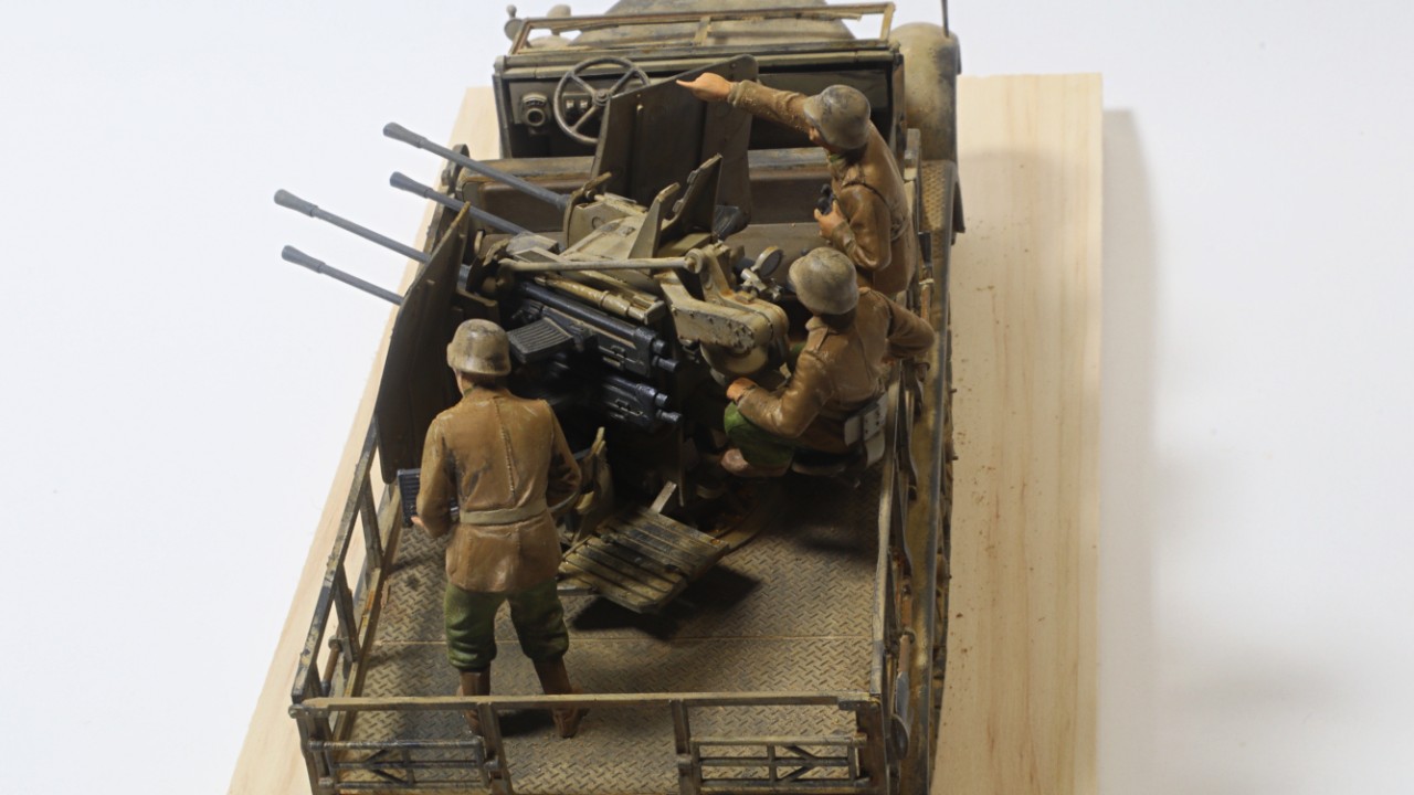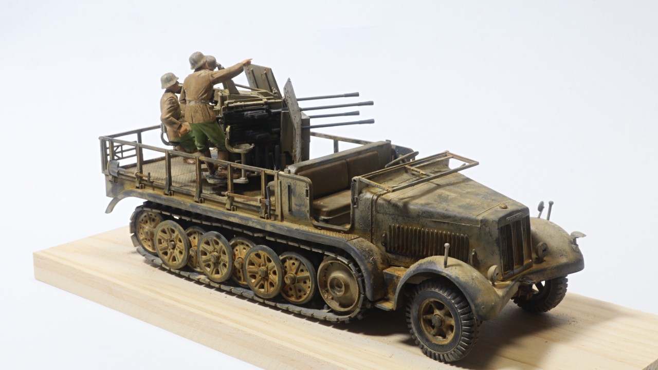 타미야 1/35 8톤 하프트랙 대공차량에에 하비보스 피규어, 그리고 아카데미 하노마그 데칼을 사용하여 만들었습니다.