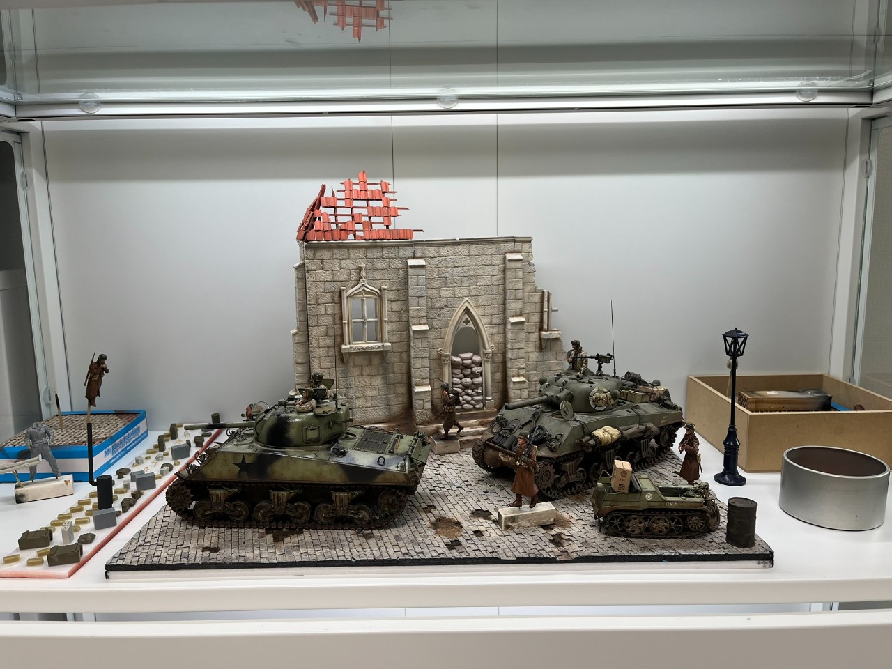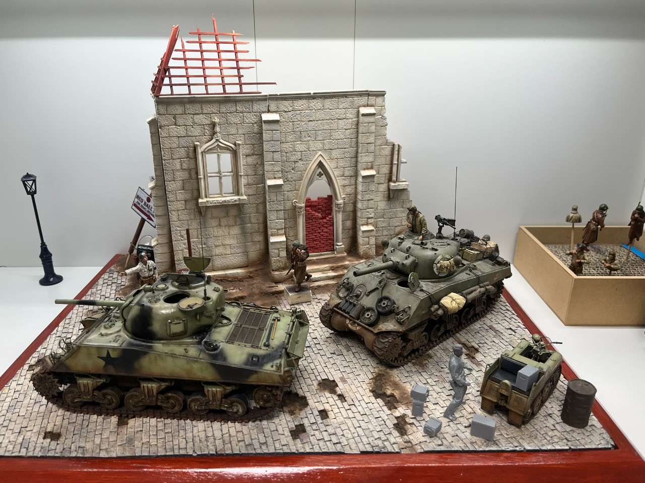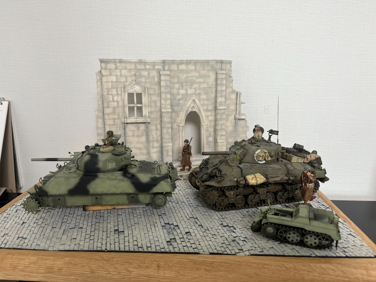 디오라마의 재미를 더하기 위해 케텐크라드는 미군 포획 버전으로 색칠하고 1/48 타미야 셔먼에서 쓰고 남은 데칼을 붙여주었습니다.