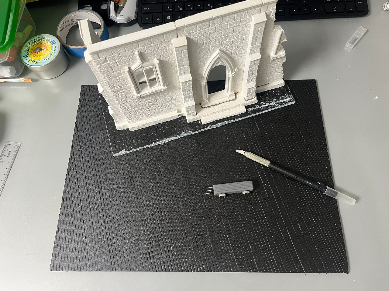 코블스톤 그라운드 표현은 5mm 두께의 검정색 폼보드로 자작하였습니다.