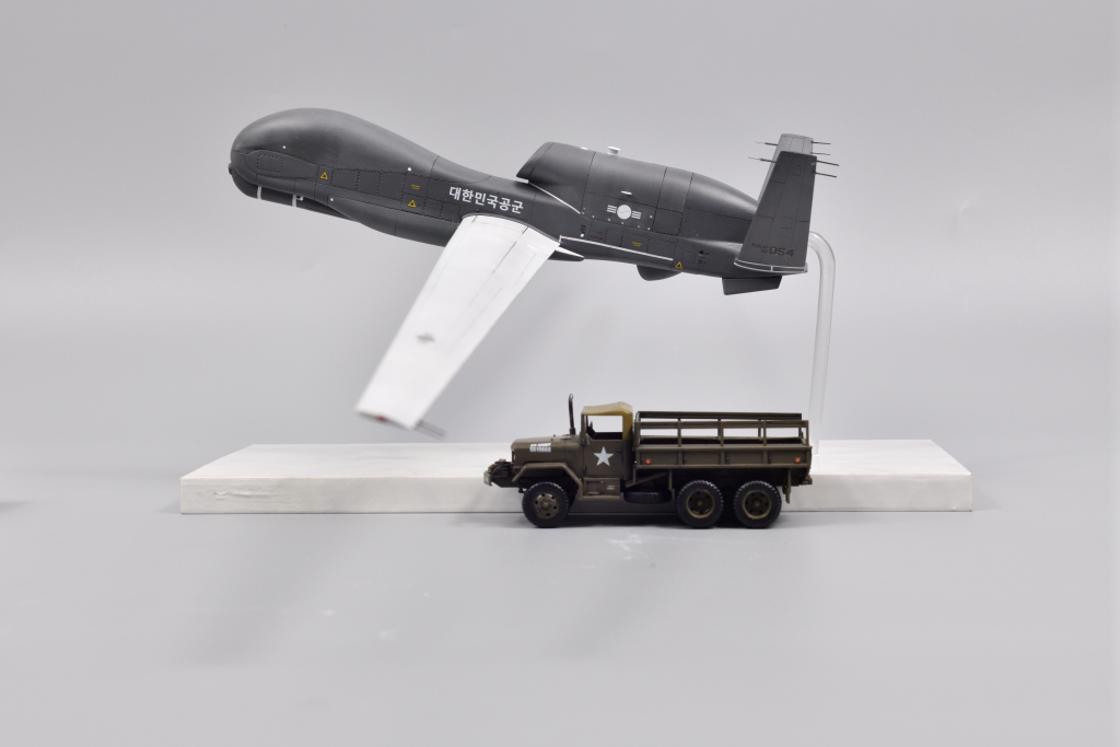 RQ-4 "글로벌호크" 는 높은 고도에 장시간 체공하면서 정찰임무를 수행하는 무인 항공기 입니다. 보통 무인기라고 하면 드론 같이 작은 걸 연상하게 되는데, RQ-4 는 거대한 몸체를 갖고 있고 특수한 임무에 맞도록 좌우로 날개가 긴 것이 특징입니다.