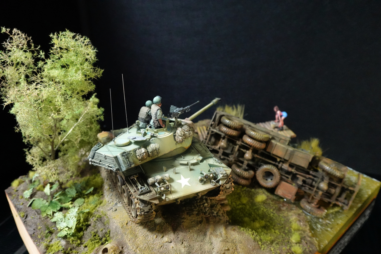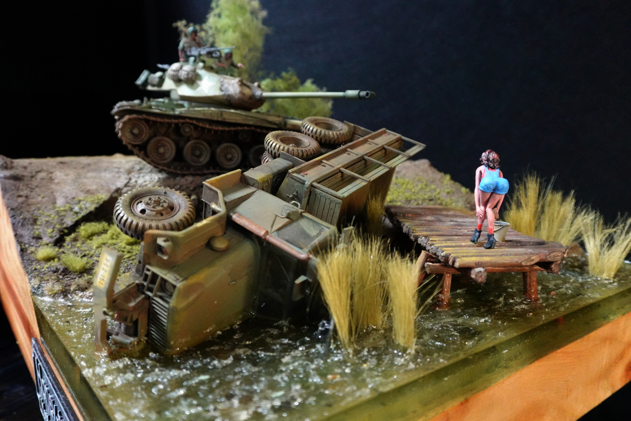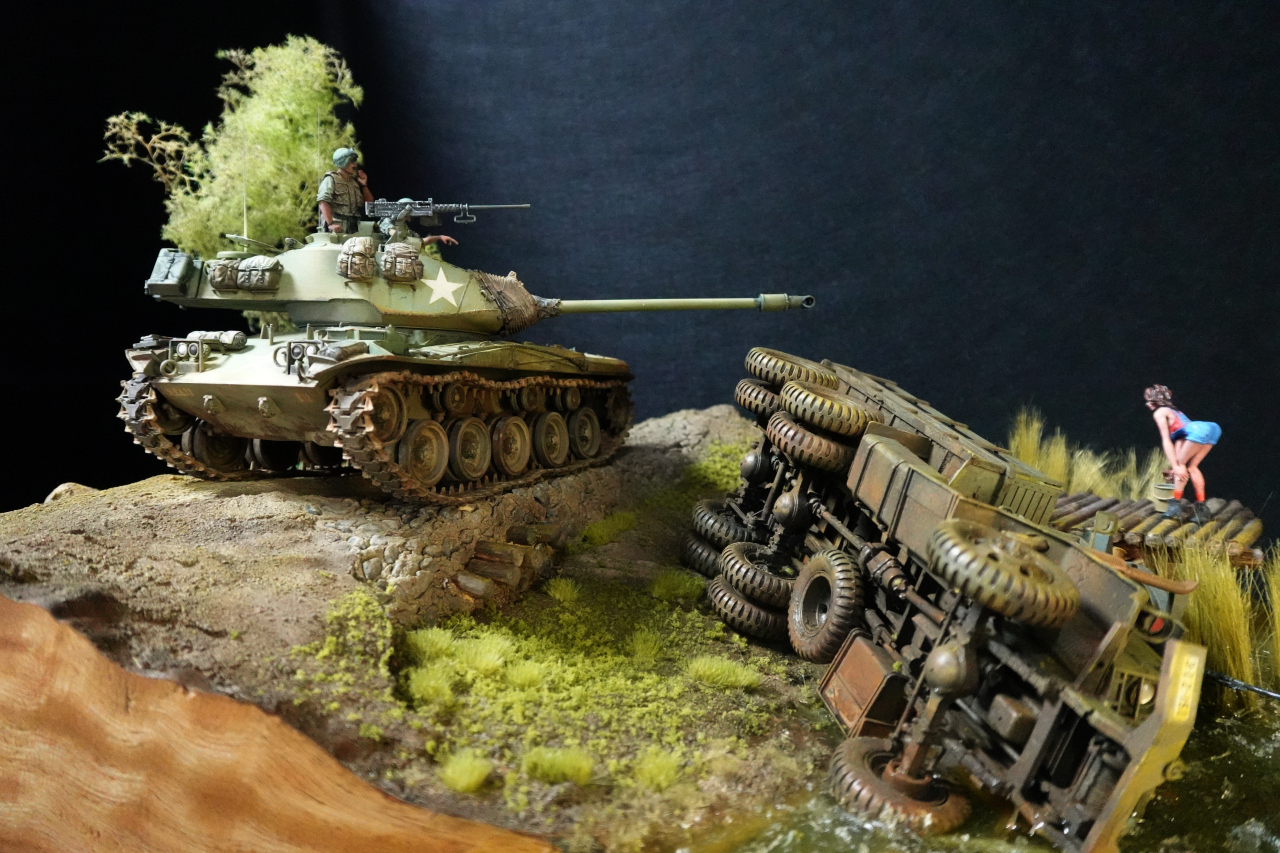 이번 작품은 베트남전쟁을 배경으로 M41 워커불독 전차와 넘어져있는 M60 트럭 배치하고