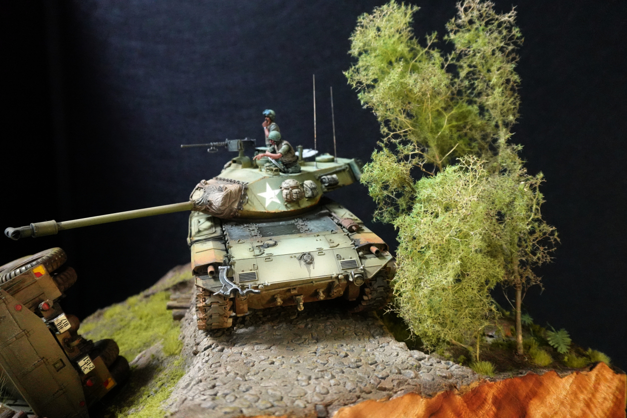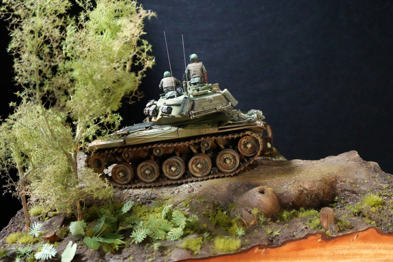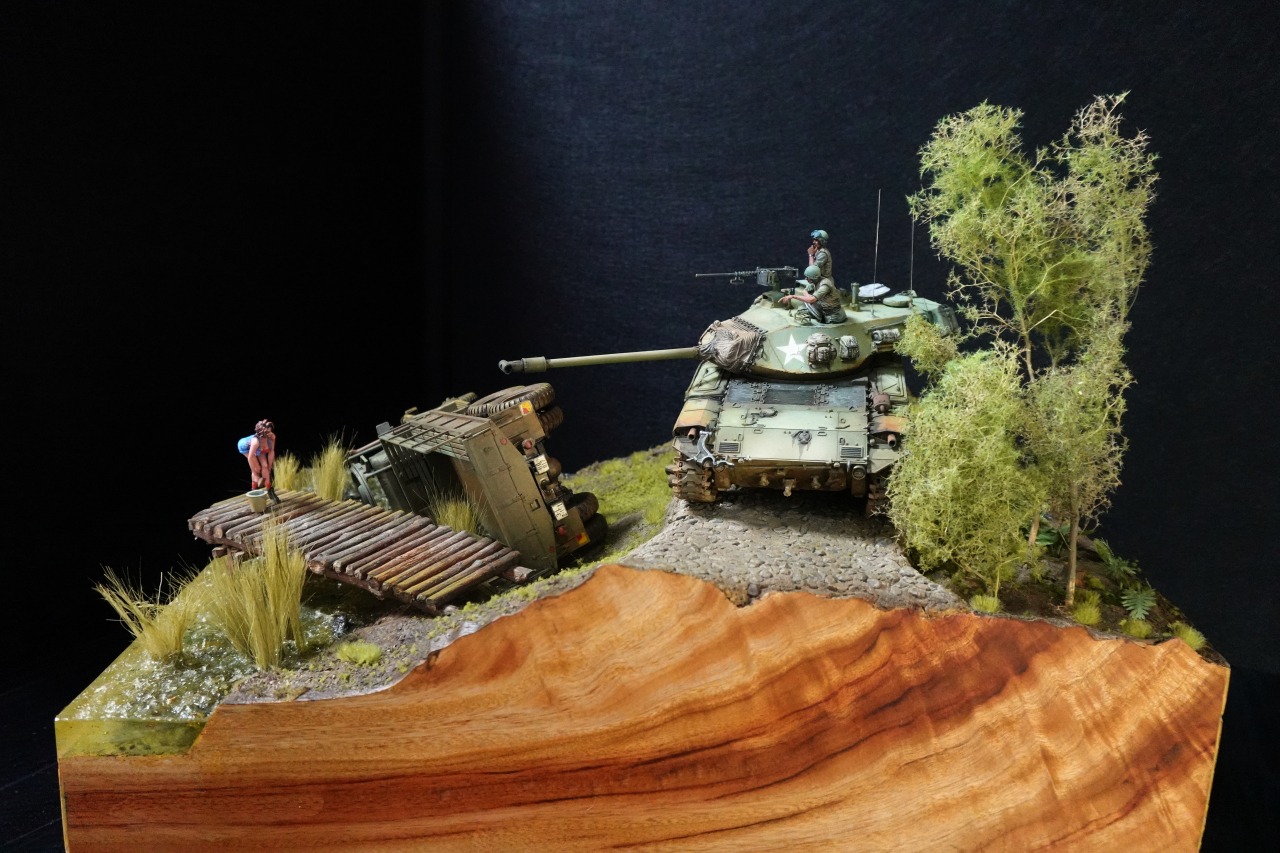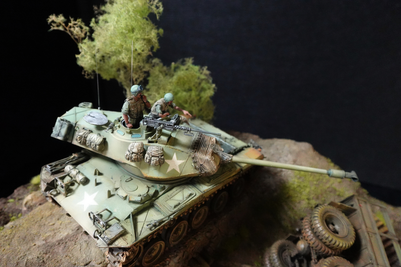 이번 작품은 베트남전쟁을 배경으로 M41 워커불독 전차와 넘어져있는 M60 트럭 배치하고