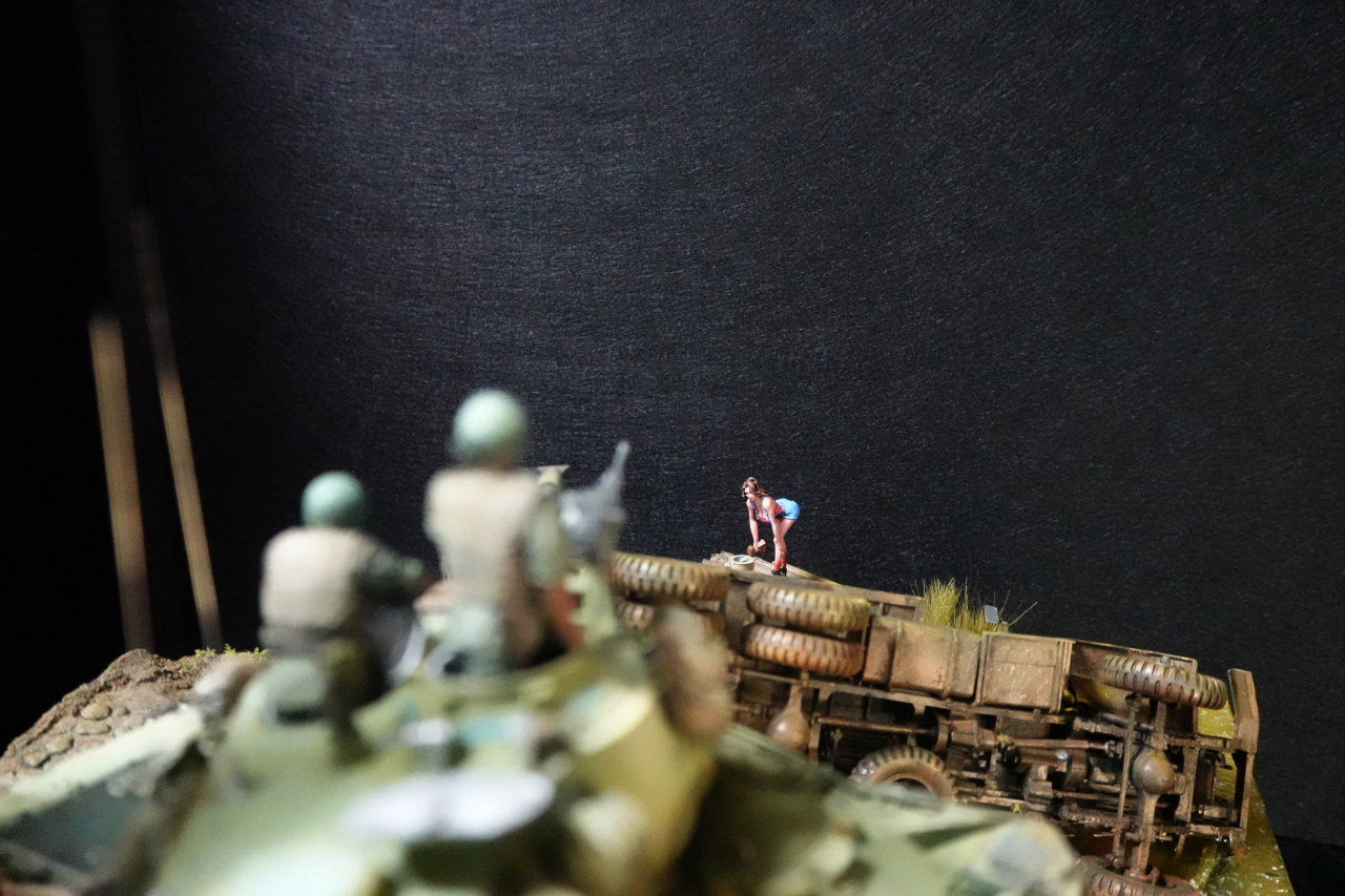 그리고 탱크와 트럭에 대한 대략적인 작업을 끝내놓은 상태에서 장식장 구석에 방치하고 있던 것을 꺼내서 디테일들을 추가하고 인형 도색을 해서 완성한 작품을 카메라에 담아보았습니다.