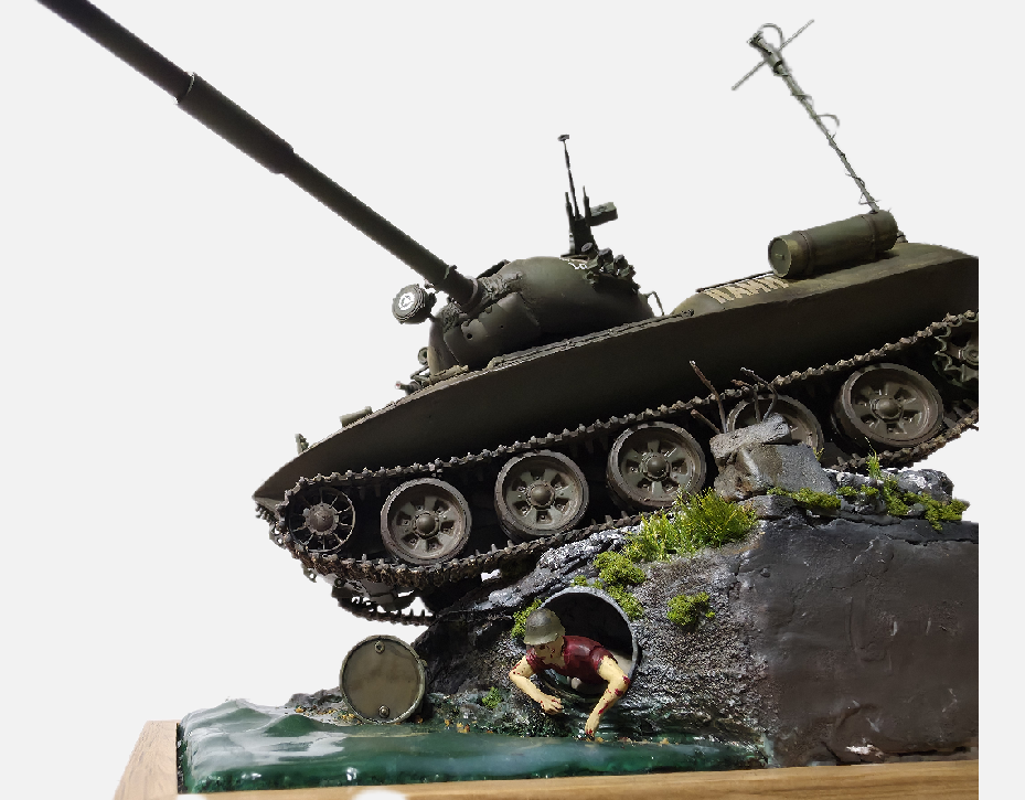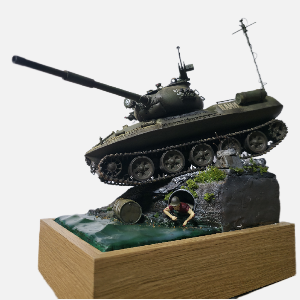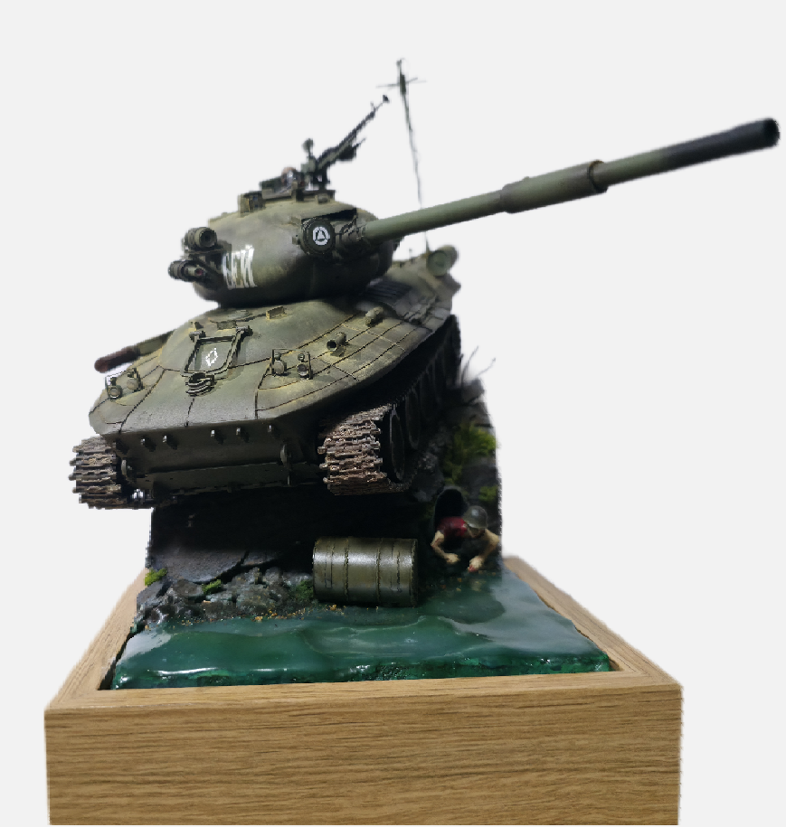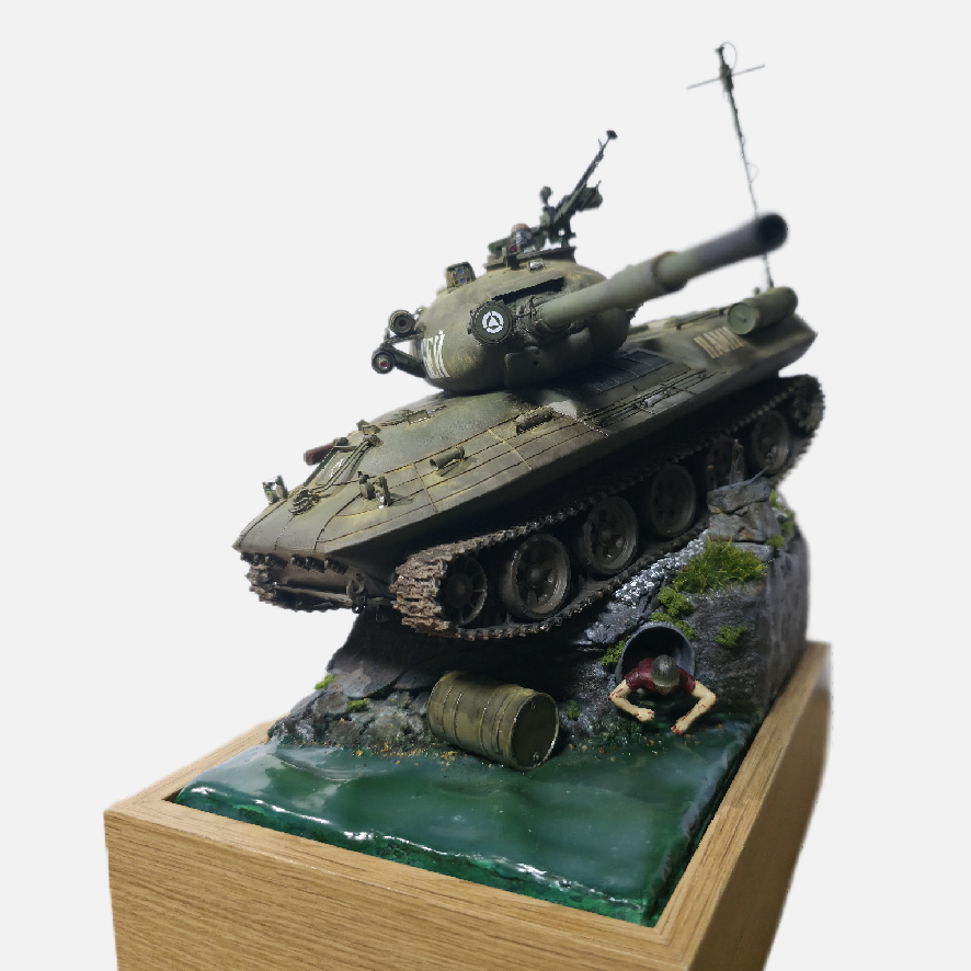 차량은 차체는 fdm프린터로 모델링후 프린팅하였고, 터렛은 아카데미사 티삼사 포탑 상판에 지점토를 덧붙여 성형해주었습니다.