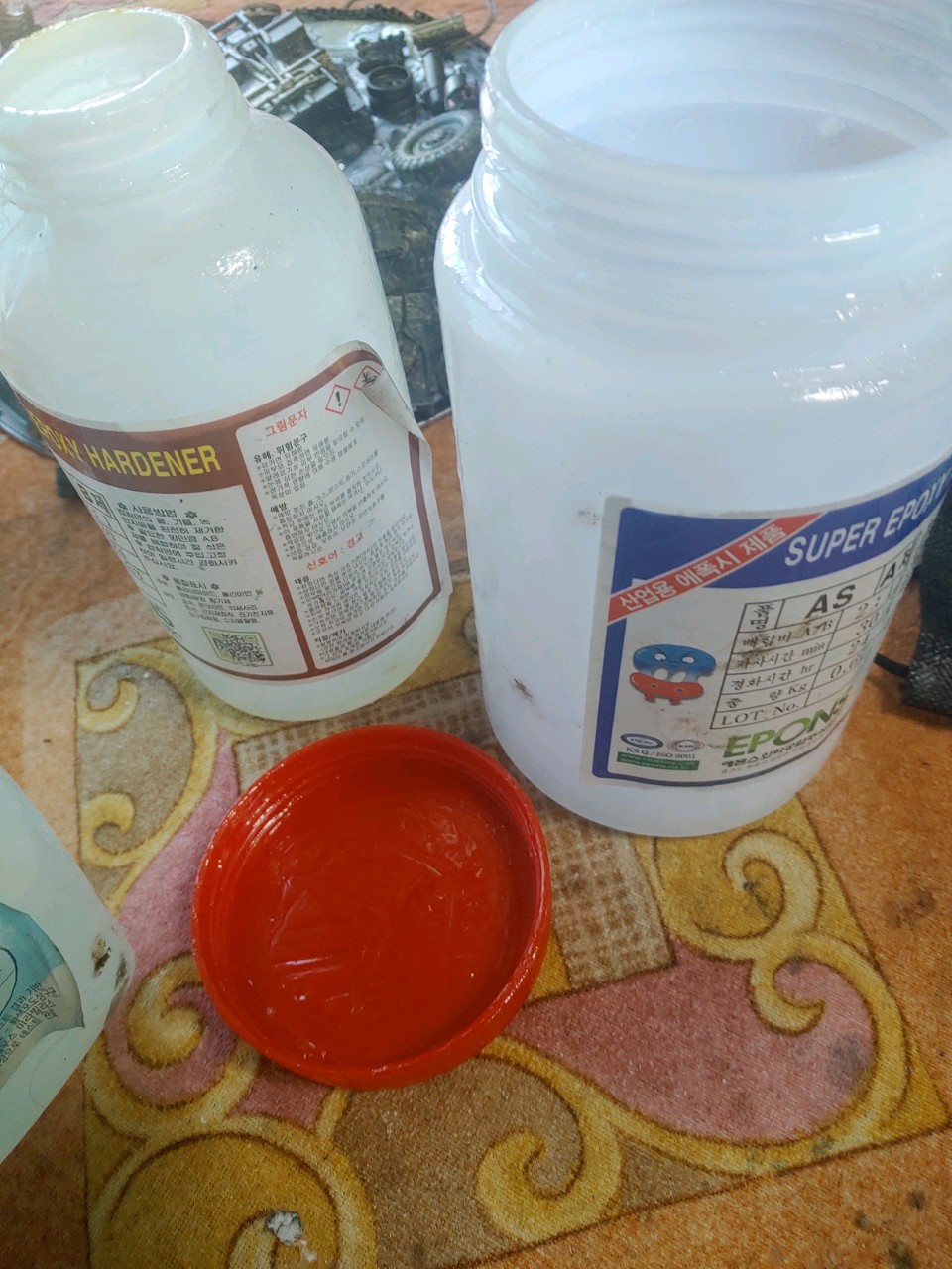 올코팅을 합니다.에폭시 본드! 냄새가 독하고 몸에 안 좋으니 마스크 쓰고 환기 시키고 꼭 비닐장갑 착용 하세여! 손에 묻으면 씻어내기 골치 아픕니다.지점토로 씻으면 잘 빠져 나가긴 하더군요!