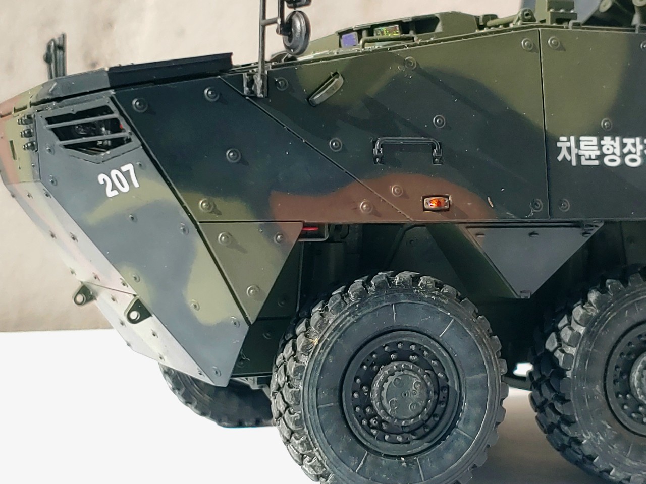 국군의 날 사양을 위해 측면 군장 결속끈을 달지 않고, 타이어 흙먼지를 제외한 웨더링을 자제했습니다.