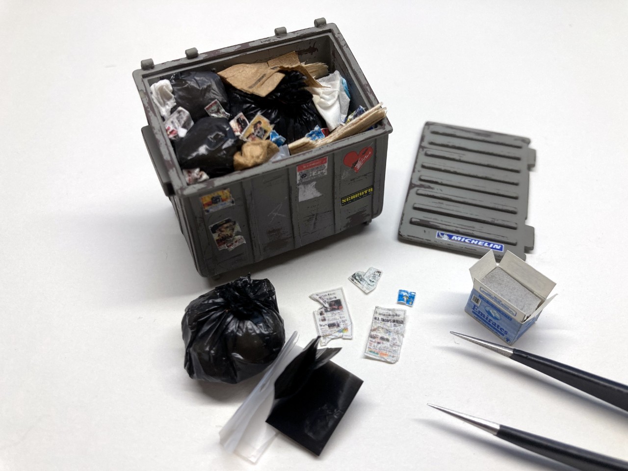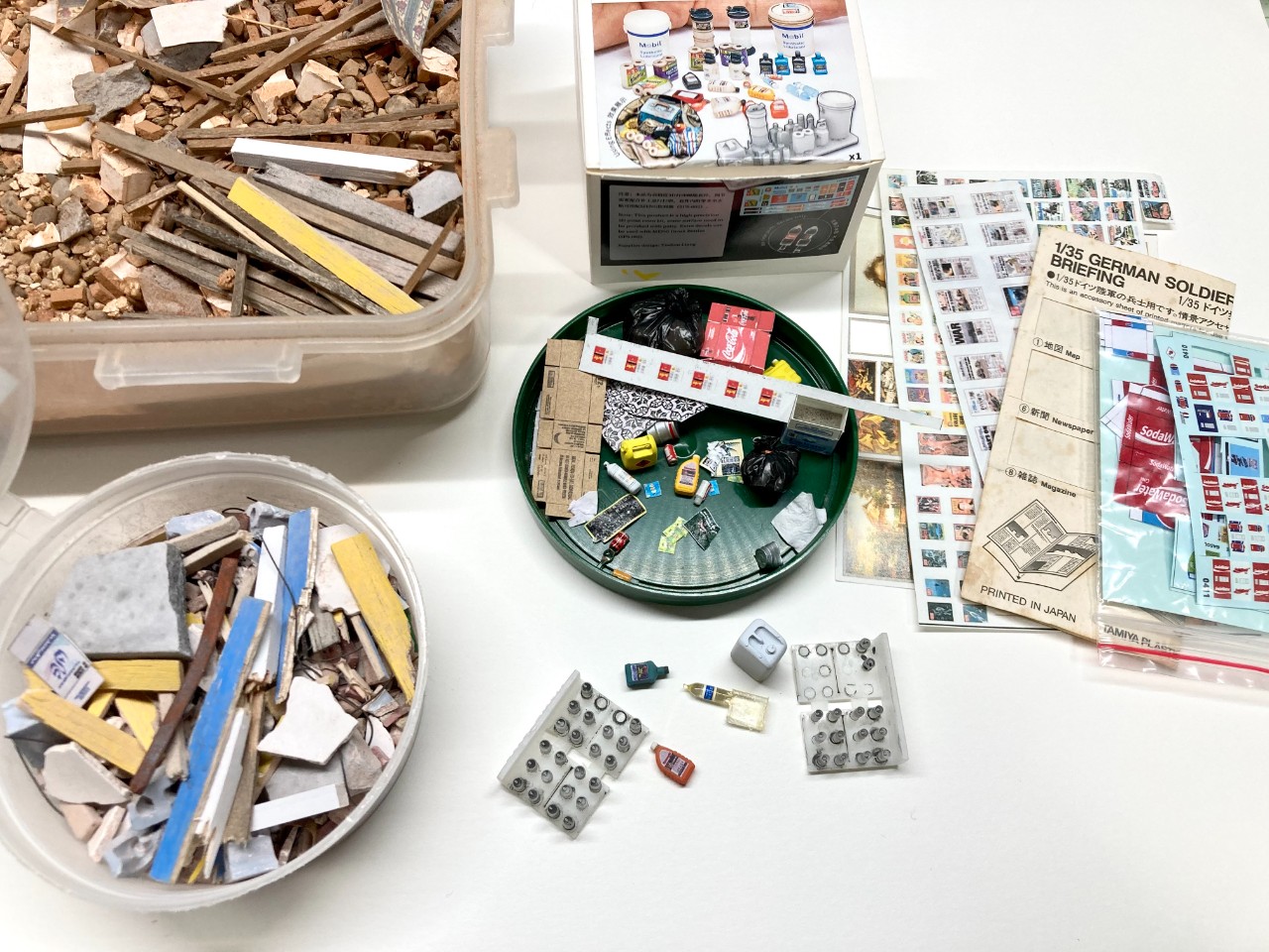 건물잔해와 파편 기타 잘잘한 소품들은 발사나무와 석고로 만든것도 있고