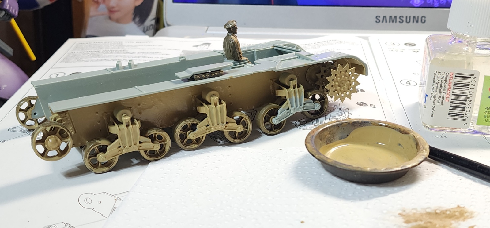 전차장 인형 때문에 포탑 먼저 만들어보고 생략된 연막탄 발사기도 부품 하나 잘라다가 넣었습니다. 내부 재현 부품들은 쓸 일이 없다보니 내부 재현 부품들을 자르고 깎아서 쓰기도 했는데 아마 그 중 하나겠지요...