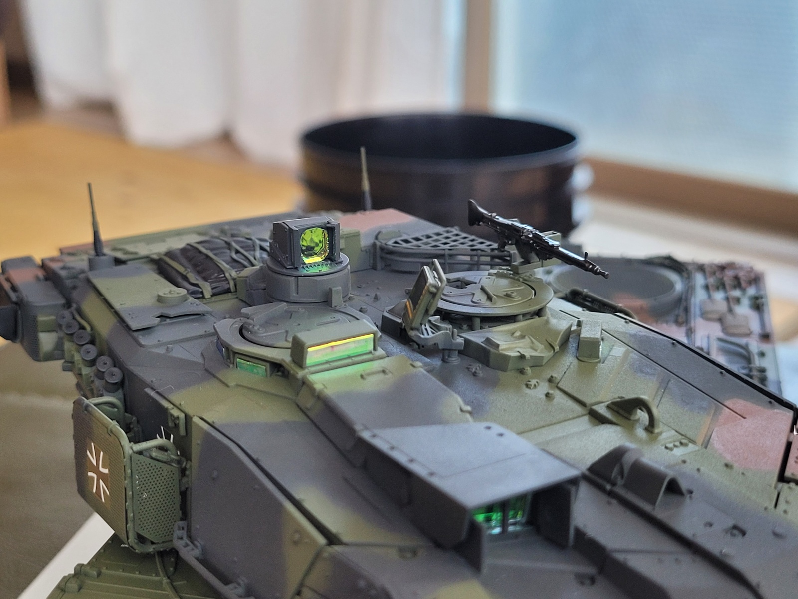 타미야 레오파드2a7 입니다. 타미야란 브랜드답게 조립성은 좋으나 많은 파츠와 런너들이 타미야도 타브랜드의 트랜드에맞게 변화된 모습을 보여주는 제품같습니다. 동봉되있는 도색가이드참고후 도색하였으며, 디테일하게 가이드도 잘 되있습니다.