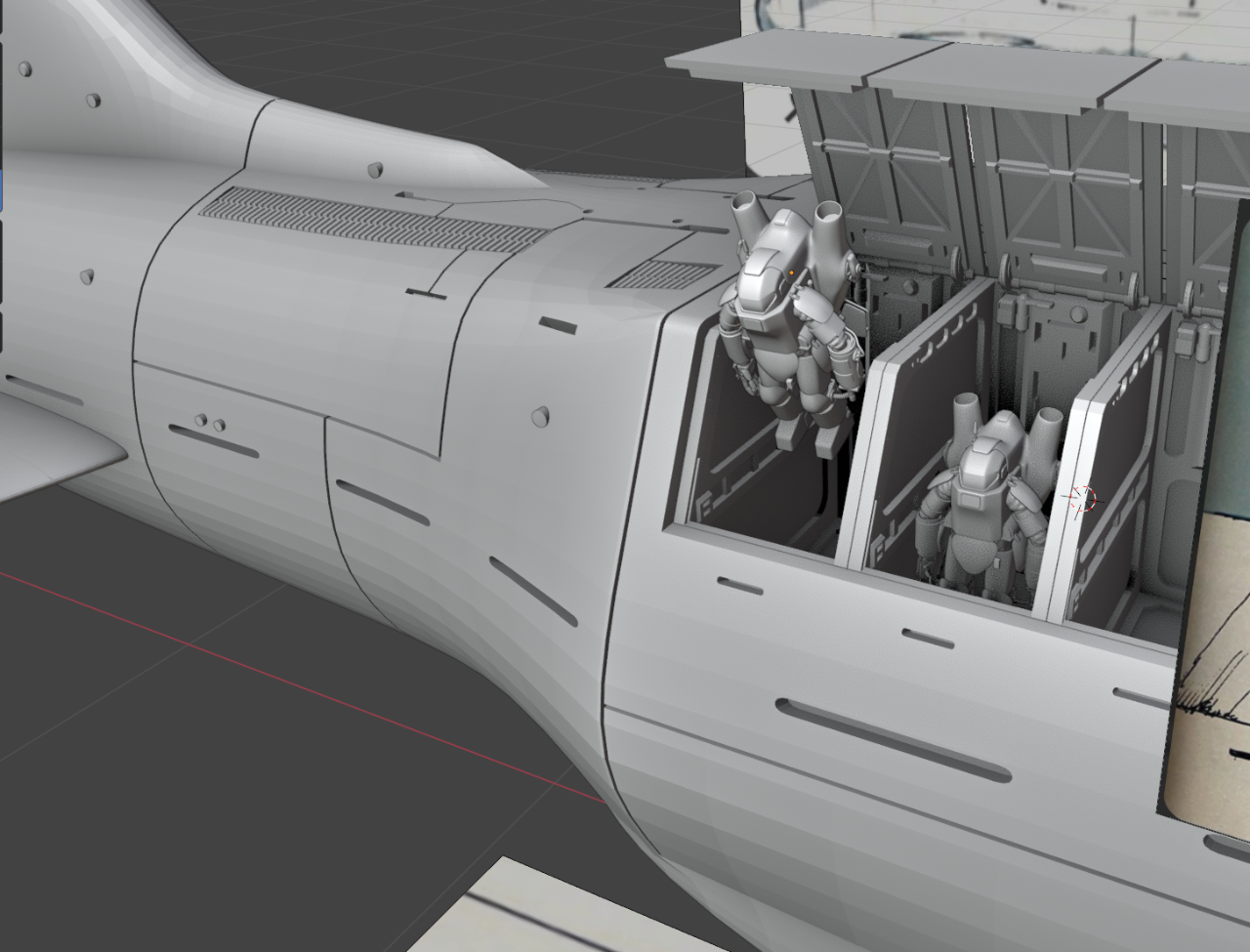 잡지책에서 본 장면의 재현입니다. 저렇게 개별 포드가 열리면서 출격하는것 같았습니다.