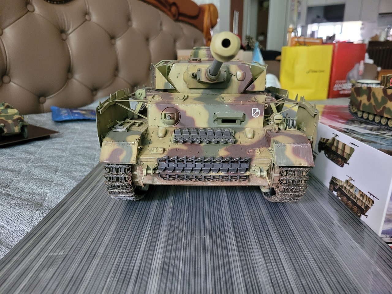 직접 만들고 도색한 트럼페터 1/16. 4호전차 h형입니다. 내부는 생략했으며 외장위주로 작업한 녀석입니다. 크기 특성상 직거래 원합니다.가격30만. 직거래 김포.