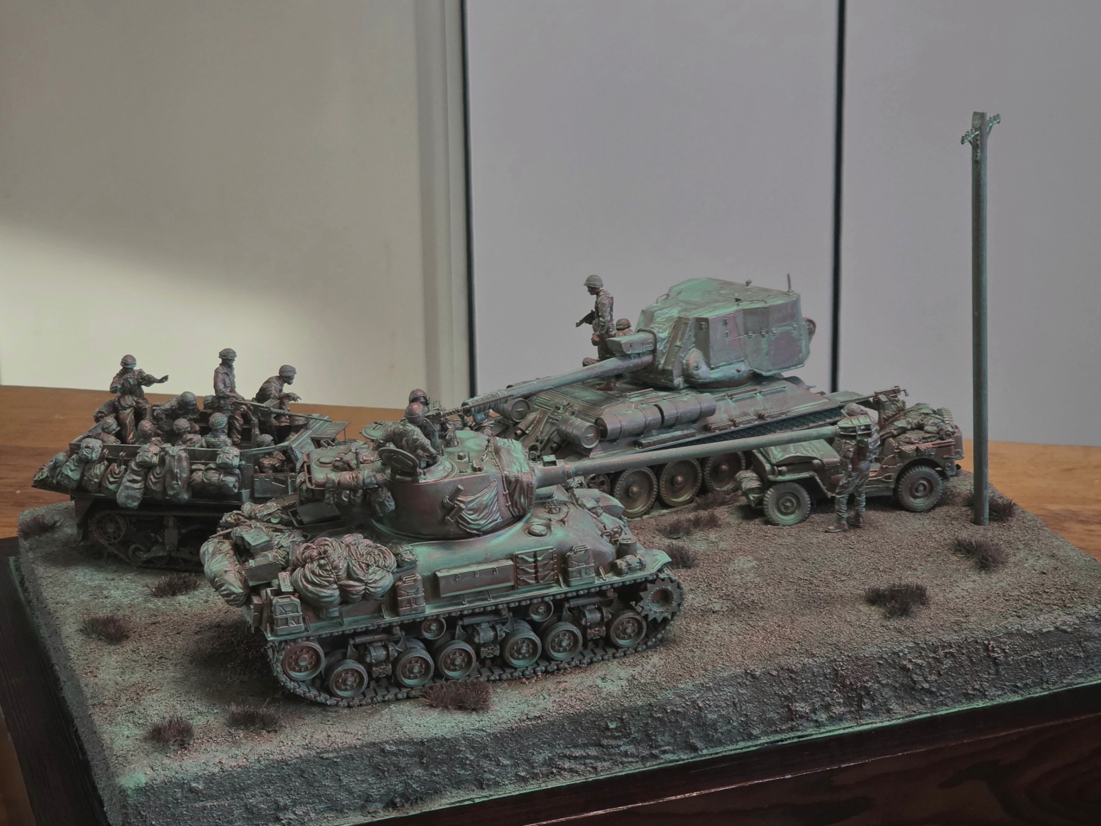 대형 디오라마를 만들고 싶으나 시간 제약 등으로 녹이 쓴 청동 느낌으로 제작하였습니다. (핸드폰 사진이 본래 색감을 다 담지는 못하네요)