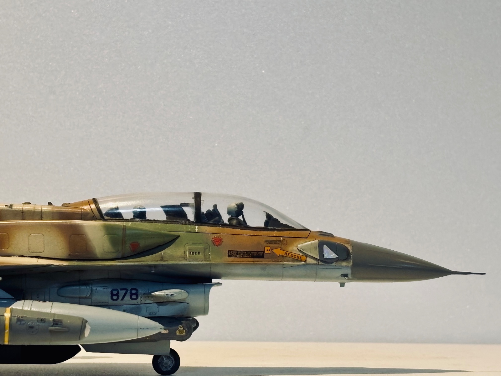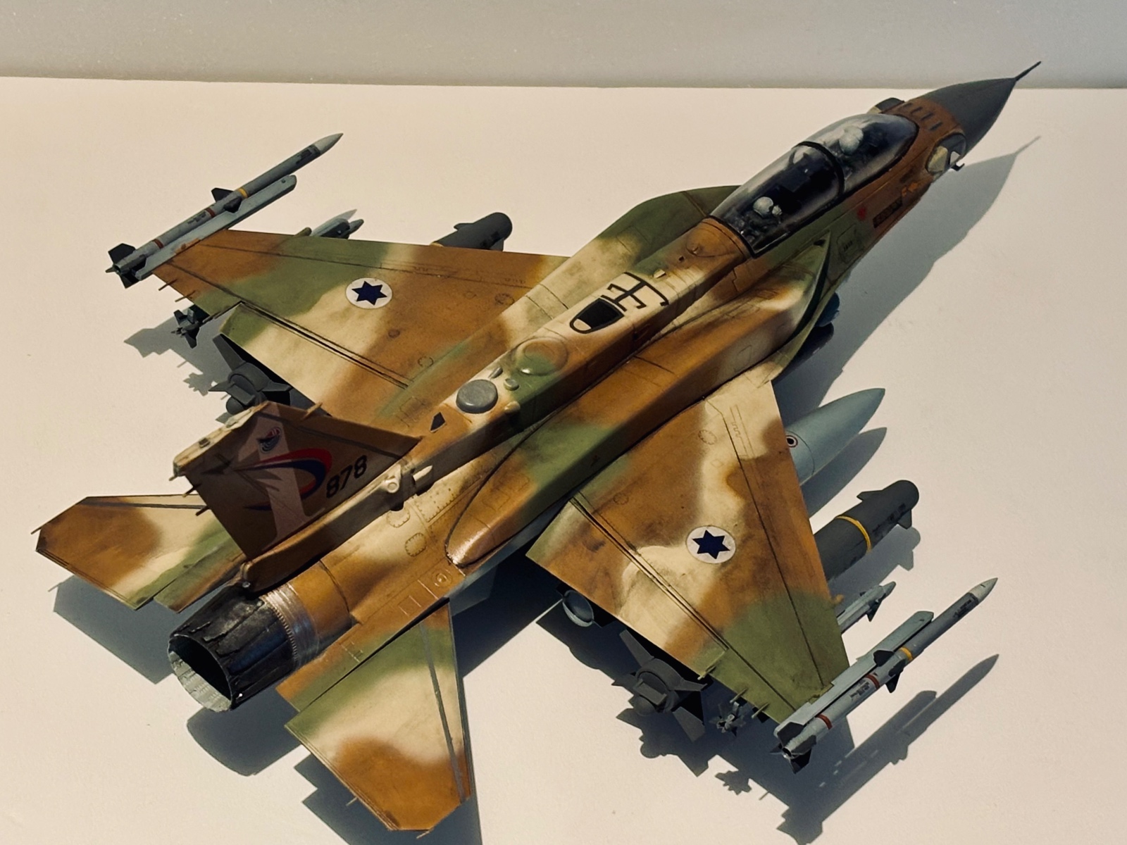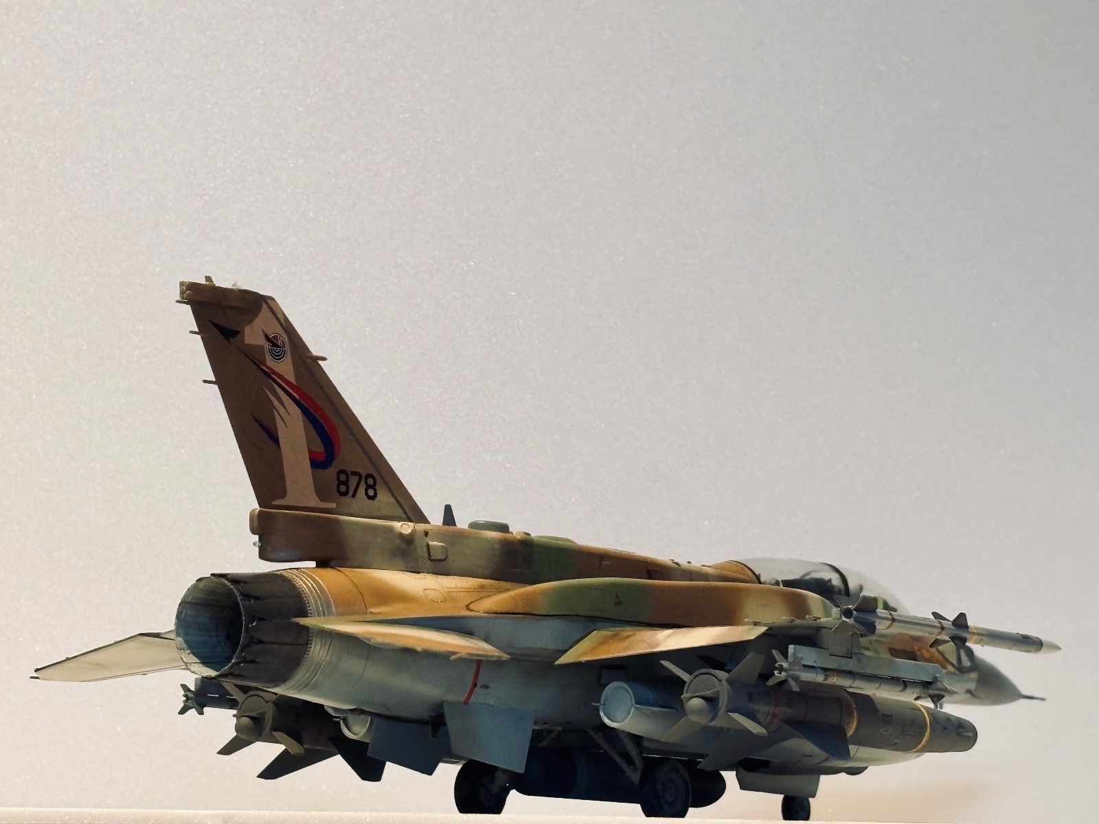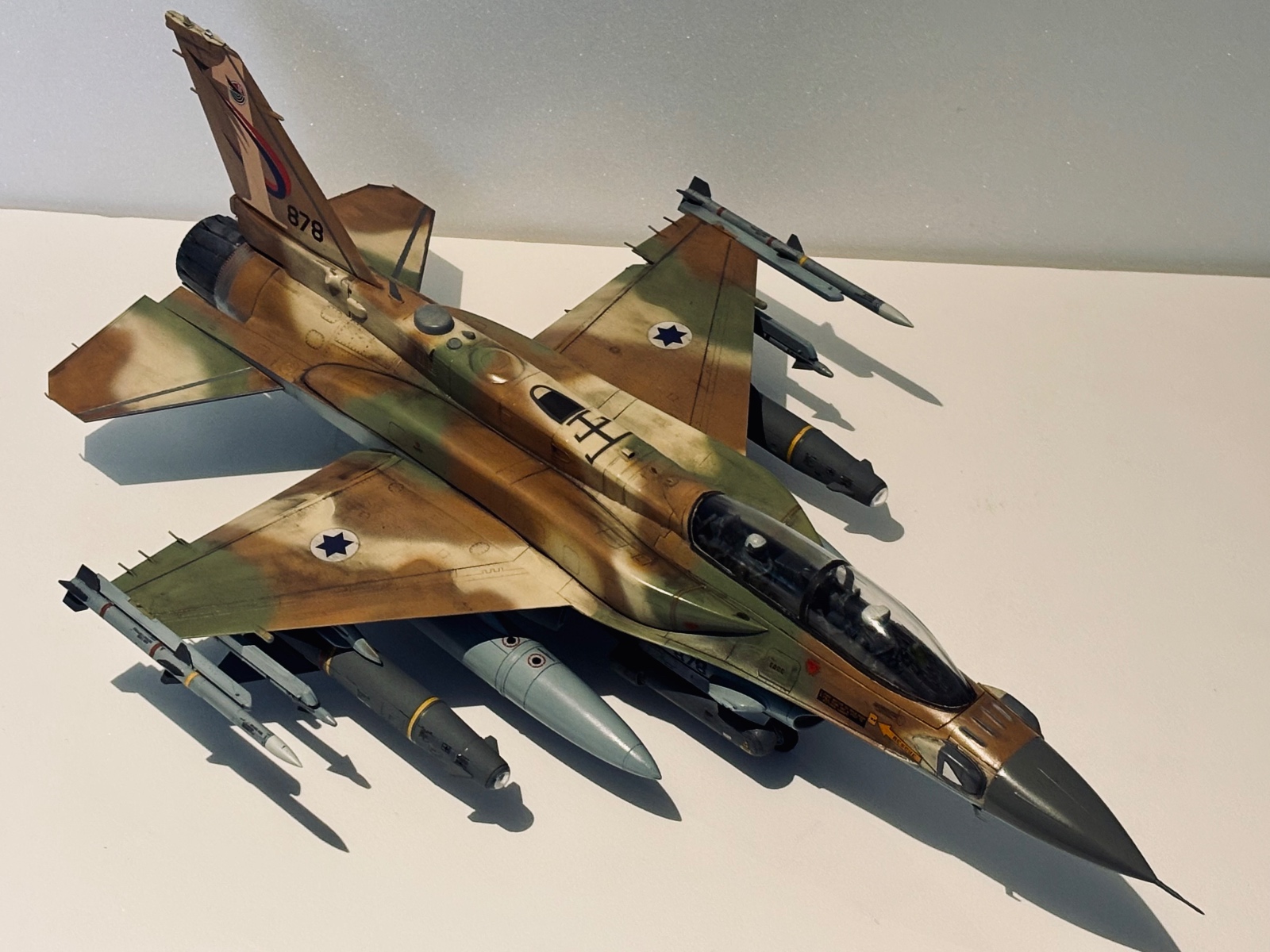 GWH에서 발매해준 F-16I입니다 초판한정으로 캐노피 마스킹씰과 조종사 두명이 들어있었고 무장 프로포션은 상당히 좋습니다 일단 키트 구성으론 드롭탱크 2종(기체 중앙과 주익내측) 델릴라,스파이스-2000,파이선 미사일 그리고 사진에 장착된 GWT-370(주익 내측 연료탱크) AGM-142 팝아이 AN/ASW-55 AN/AAQ-28 AN/ AAQ-13 AIM-9x AIM-120C가 들어있습니다