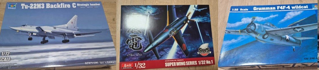 1/72 Tu-22m3 폭격기 미개봉, 1/32 조형촌 신덴 미개봉, 1/32 F4F 와일드캣 미개봉 시중가보다 싸게 팝니다.
