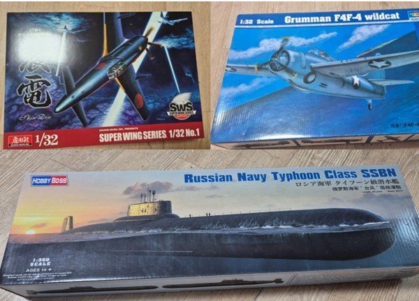 1/32 조형촌 신덴 미개봉, 1/32 F4F 와일드캣 미개봉, 1/350 하비보스 타이푼 핵잠수함 미개봉 시중가보다 싸게 팝니다.