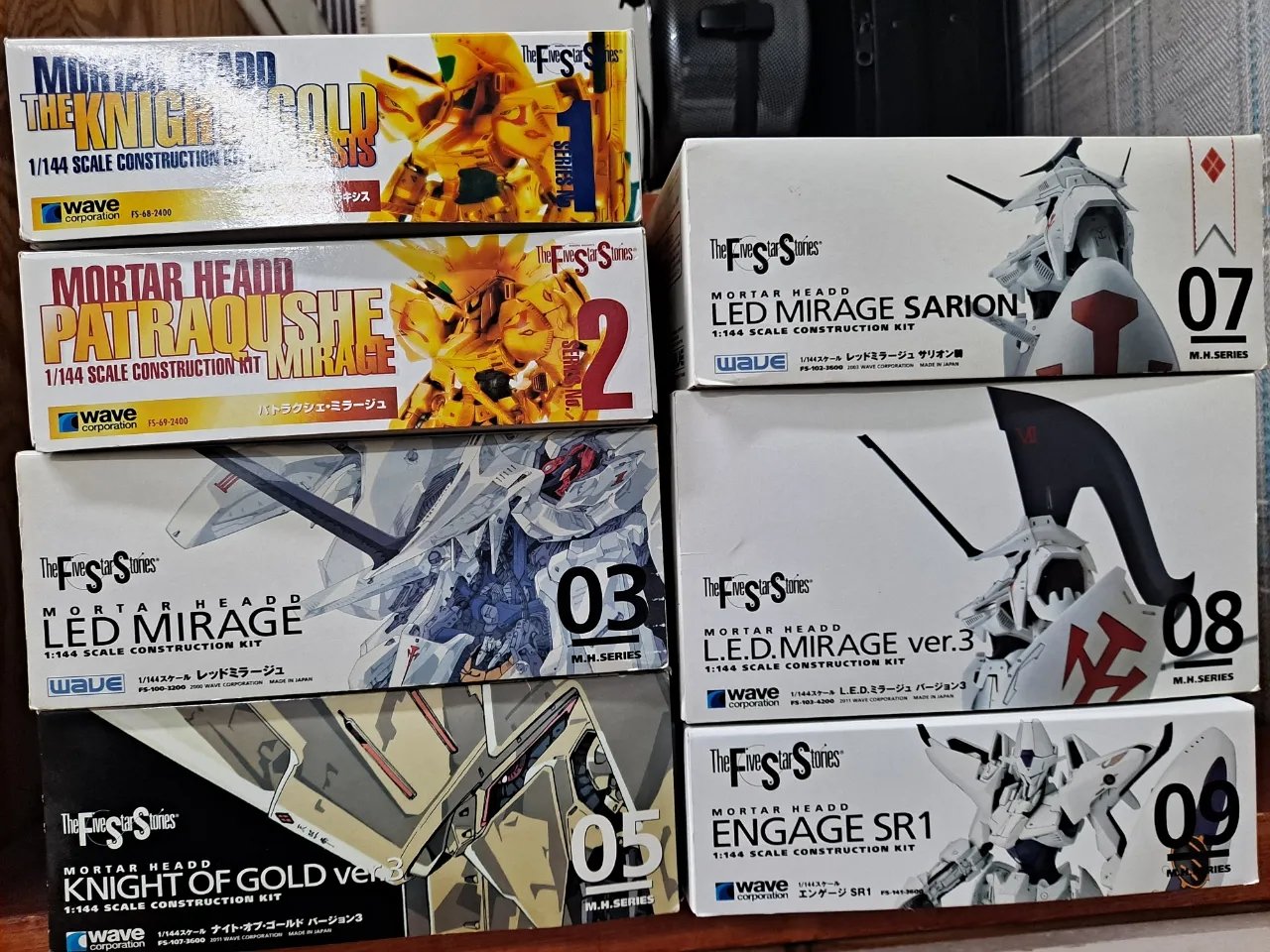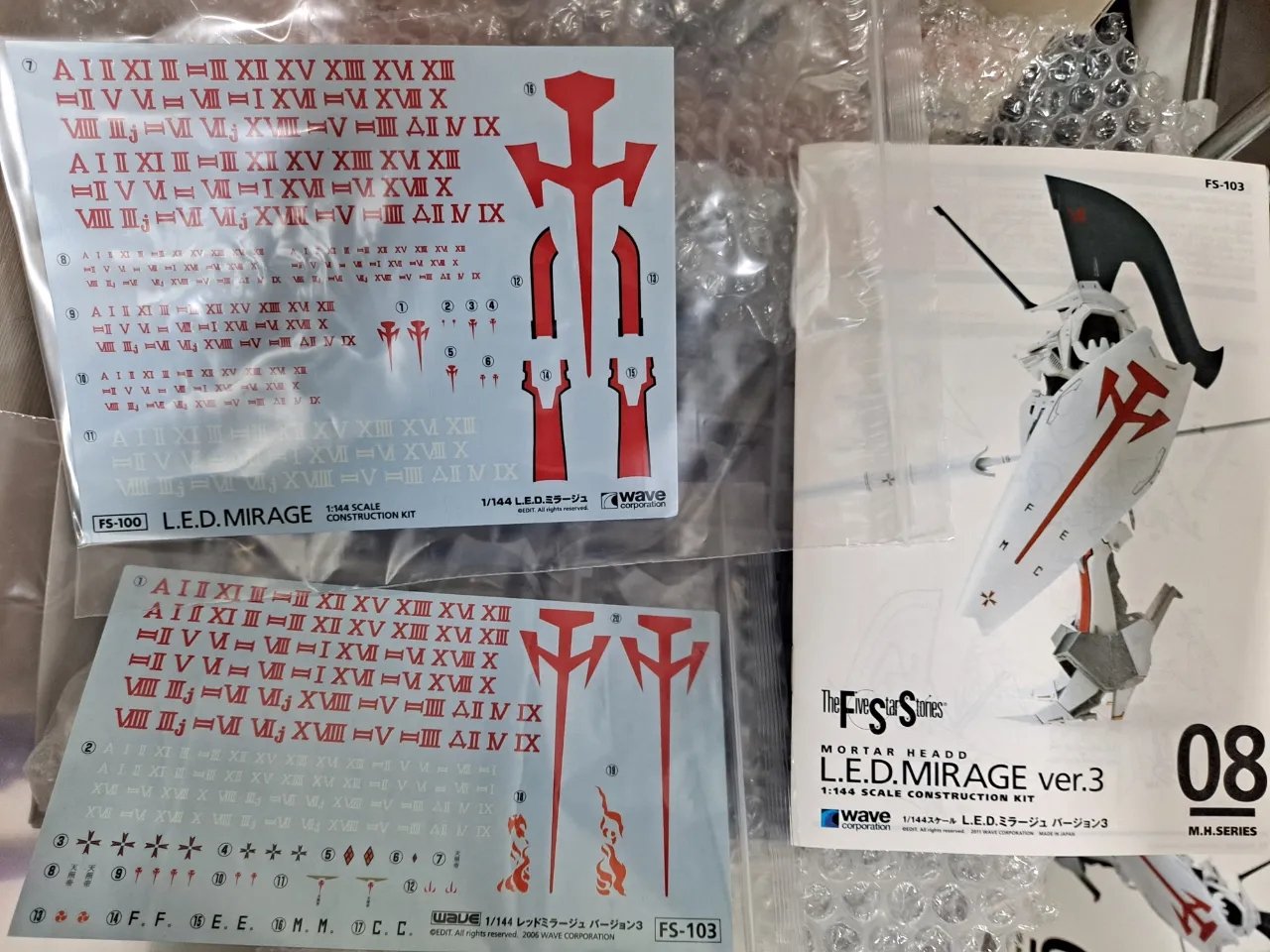 5번 나이트오브골드 ver.3 = (비닐훼손으로 지퍼백 분리하여 담은 제품)7번 레드 미라지 사리온기 =(데칼의 불량있습니다.)