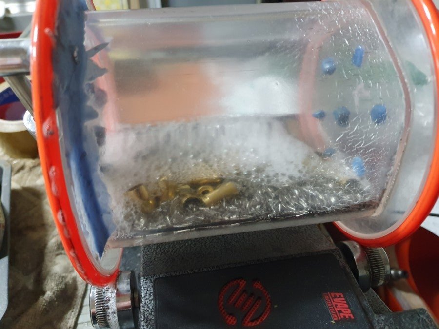텀블링 기계로 세척과 광택작업을 합니다.