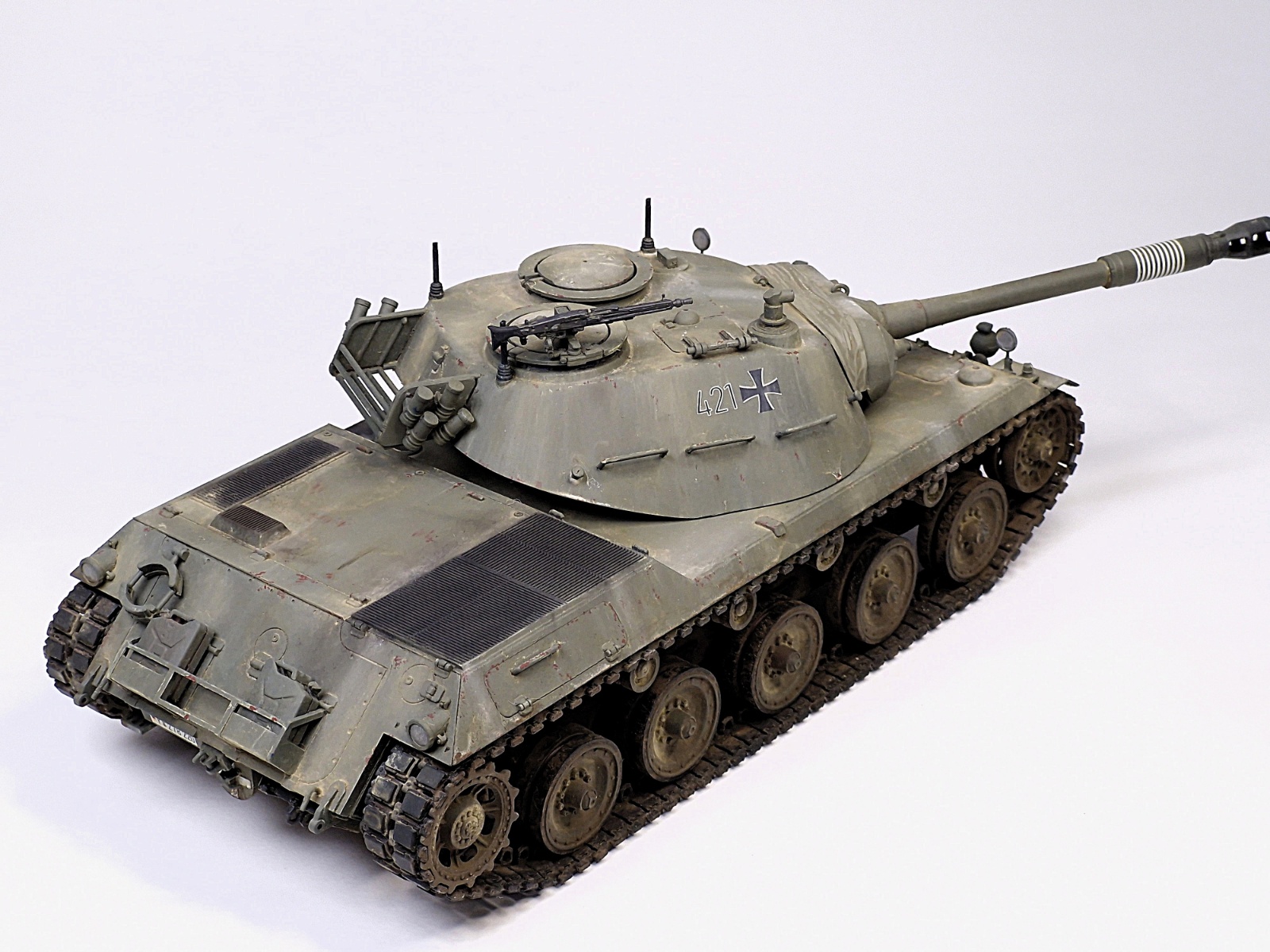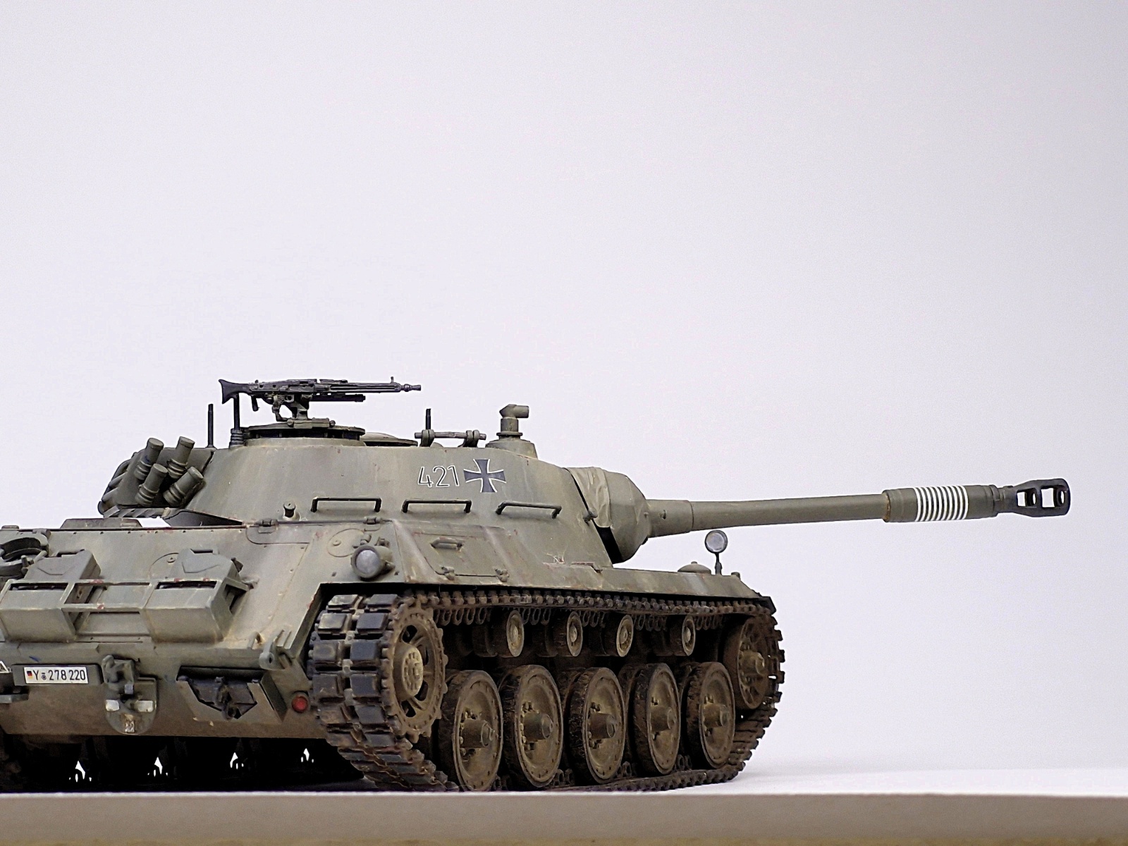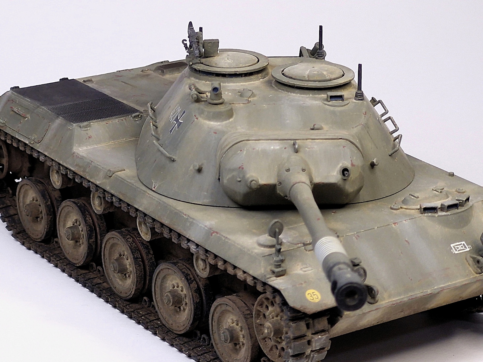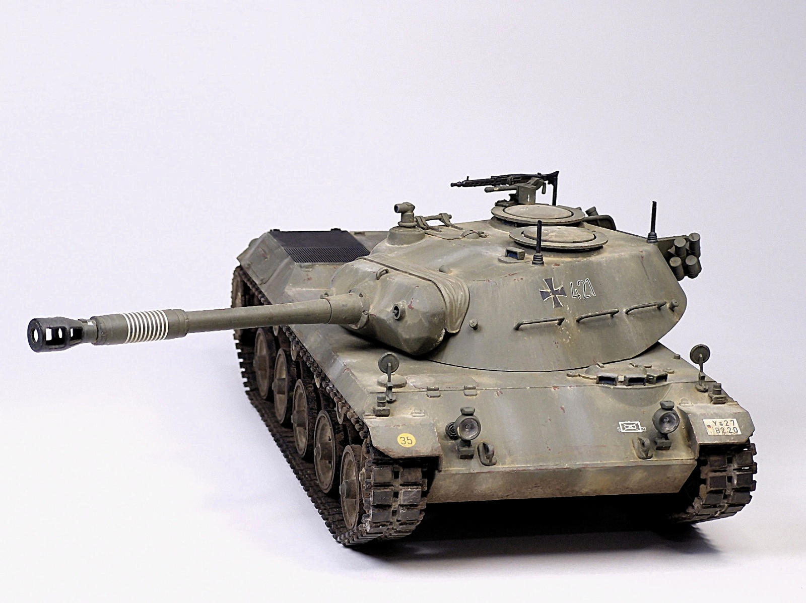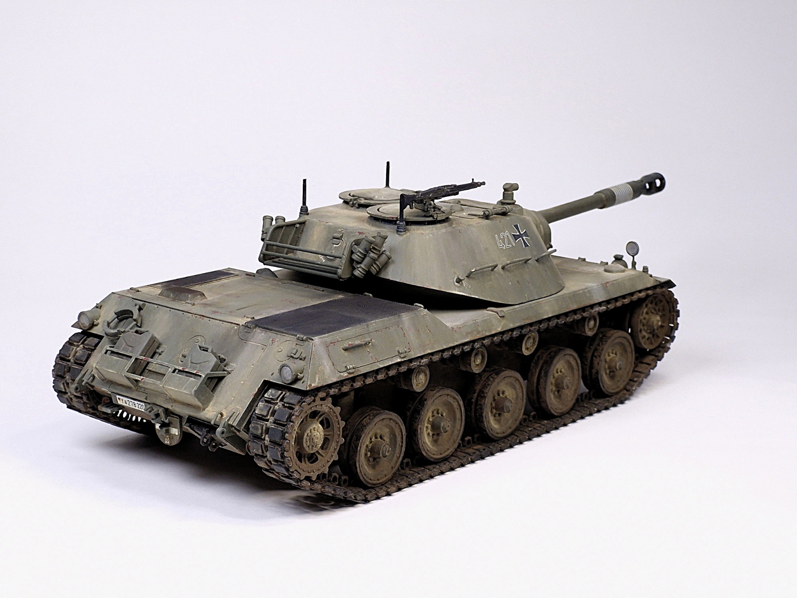 도색은 역시 바예호 아크릴만을 사용했으며, 냉전 초창기의 독일연방군의 단색전차의 색을 내려 했습니다. 처음에는 바예호에어 저먼그레이를 기반으로 조색했으나 생각보다 색이 진하고 녹색기가 많아 고심했는데, 의외로 바예호에어 올리브 드랍을 기반으로 조색해 주는게 정답이더군요. 길은 헤맸지만 수확은 있던 작업이었습니다.