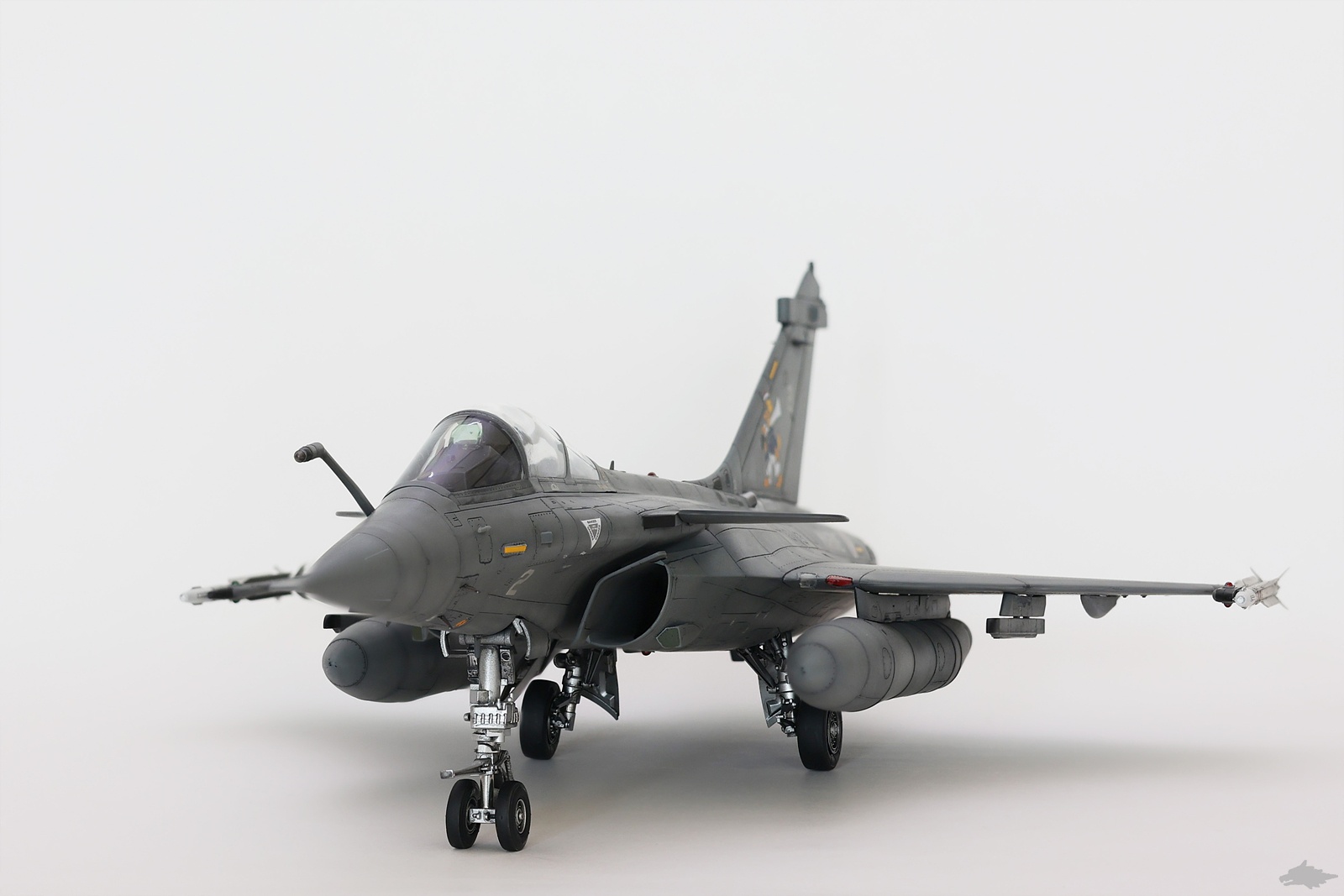 그에 따라 기수를 매끈하게 다듬어 줬고, 윙팁 런처와 엔진 노즐은 울프팩의 별매 제품 사용했습니다. MICA 미사일도 키트 부품은 제대로 다듬기가 어려워보여 레스킷의 별매품을 사용해 봤습니다.