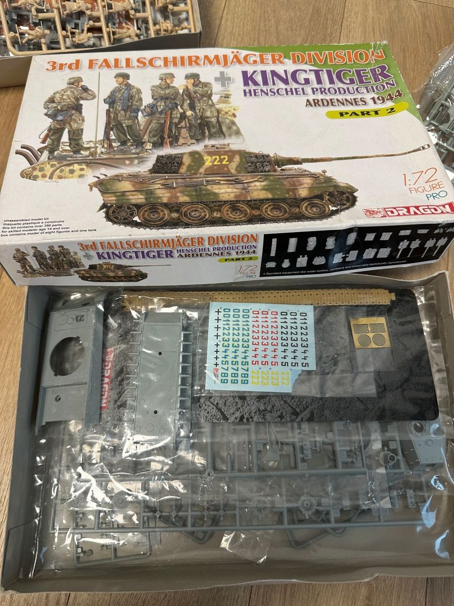 Dragon KingTiger : 탱크제품&트랙 양호, 데칼하나사용, 인형은 반이상 사용했음