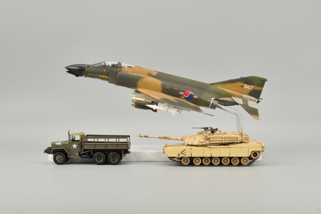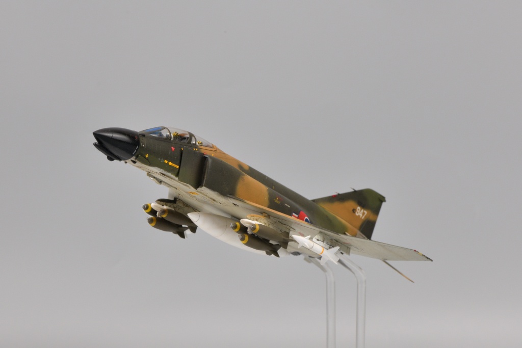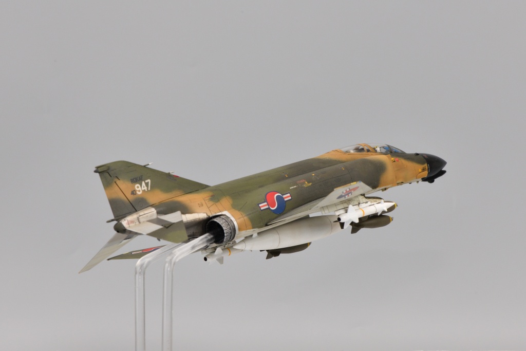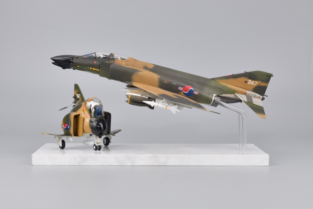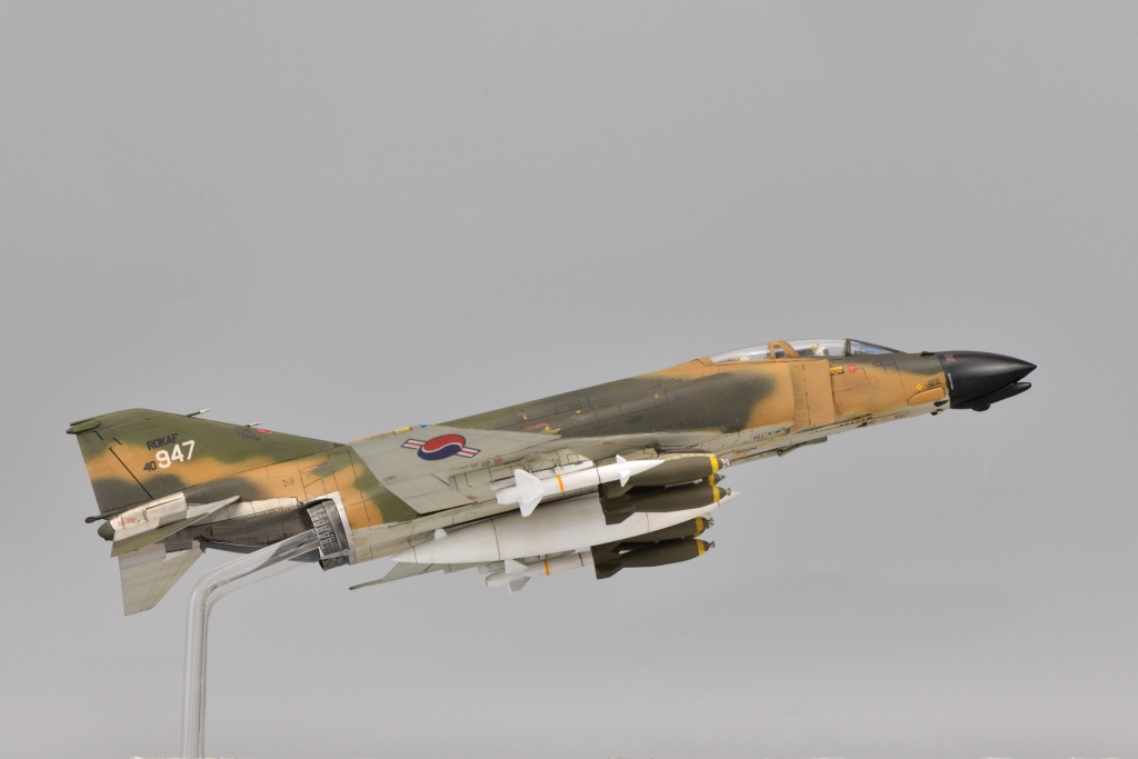 제작사아카데미스케일1/72제작완료2026.03 F-4D "팬텀2" 는 미공군이 사용하던 F-4C 형을 개선한 모델로, 1967년부터 실전 배치되기 시작해 월남전에서 대량으로 사용된 전투폭격기이다. 한국공군에는 1969년부터 도입되기 시작했는데, 당대 최강의 전폭기를 불과 2년여만에 아시아국가 최초로 받을 수 있었던 건 월남전 참전에 대한 보상 때문이었다고 한다. 1969년 첫도입 이후로도 70년대 초반과 80년대 초/중/후반에 추가 도입됐는데, 모두 미공군이 사용하던 중고 기체들이었다. 도입됐다가 반환된 경우도 있다보니 총 74대가 한국공군에서 운용됐고, 오랫동안 사용되다가 2010년 6월에 마지막 F-4D 가 퇴역했다. 이번 작품은 아래 사진의 40947 기체를 재현해봤다. 1970년 6월에 대구..