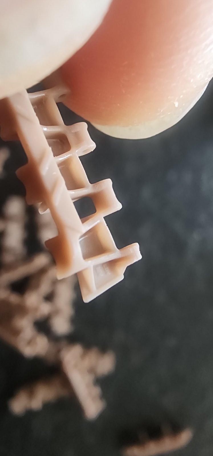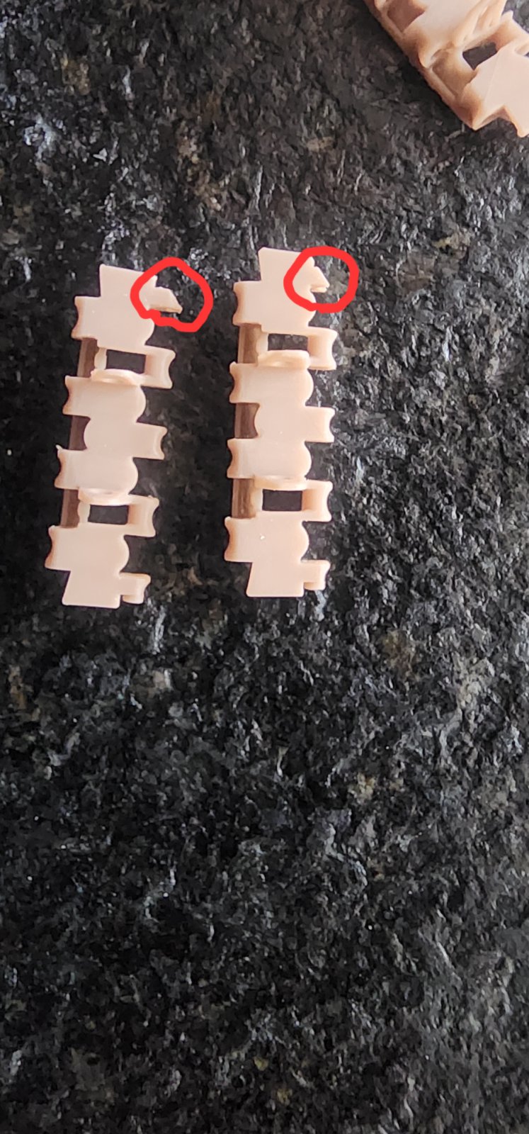 다만 우측처럼 딱 저부분의 성형이 덜 된게 몇 개 보입니다 다행히 안쪽으로 들어가는쪽이라 눈에 띄거나 조립에 문제는 없습니다