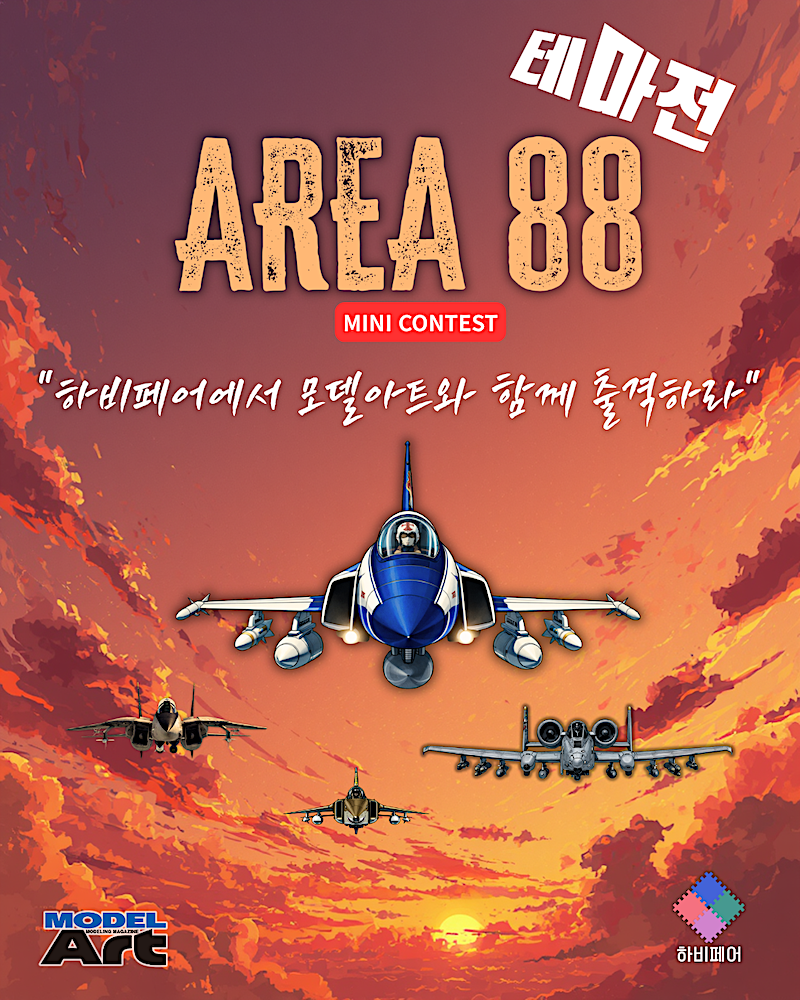 MMZ는 국내 최대 모형 행사인 하비페어에서 모델 아트와 함께 에리어 88을 주제로 한 테마전을 기획했습니다. 단순한 테마전을 넘어 미니 콘테스트로 기획된 이번 행사는 출품작을 대상으로 모델 아트 초이스, MMZ 초이스, 협찬사 초이스 등 다양한 시상을 준비 중이며, 참가자 전원에게 에리어 88 기념품을 제공할 예정입니다.