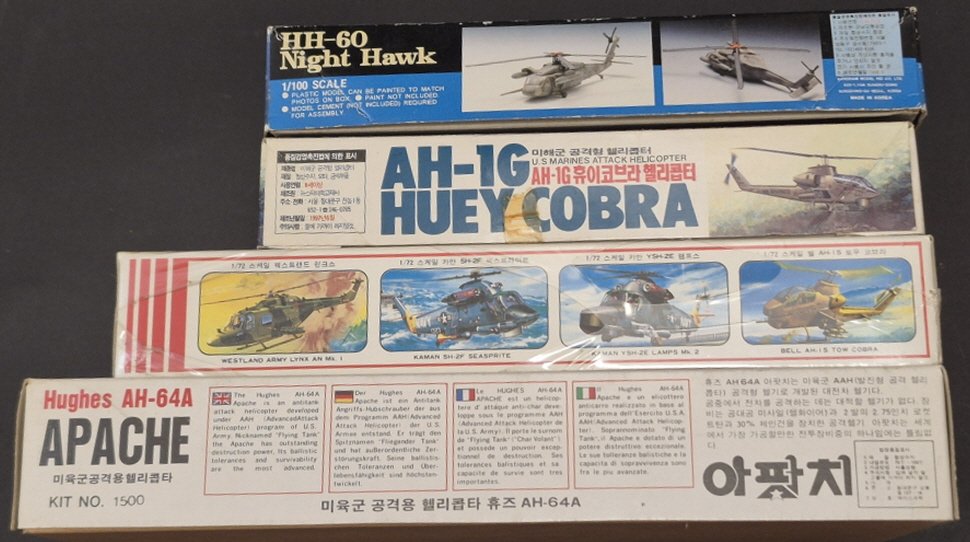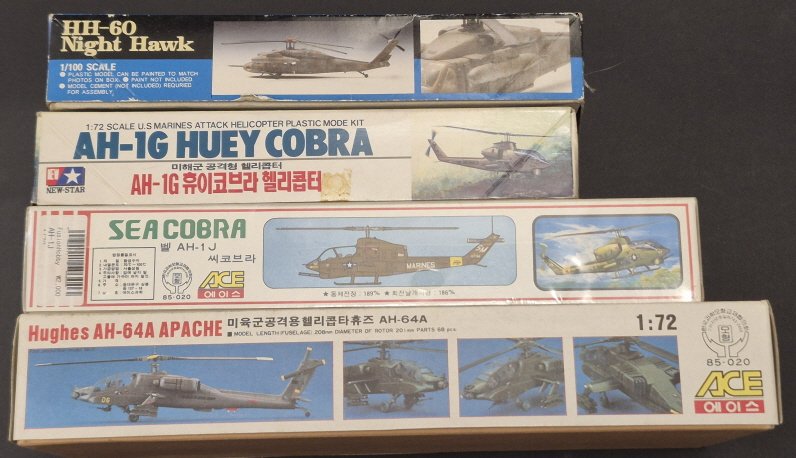 1/72 에이스 AH-64A, AH-1J, 뉴스타 AH-G, 1/100 강남모형 HH-60