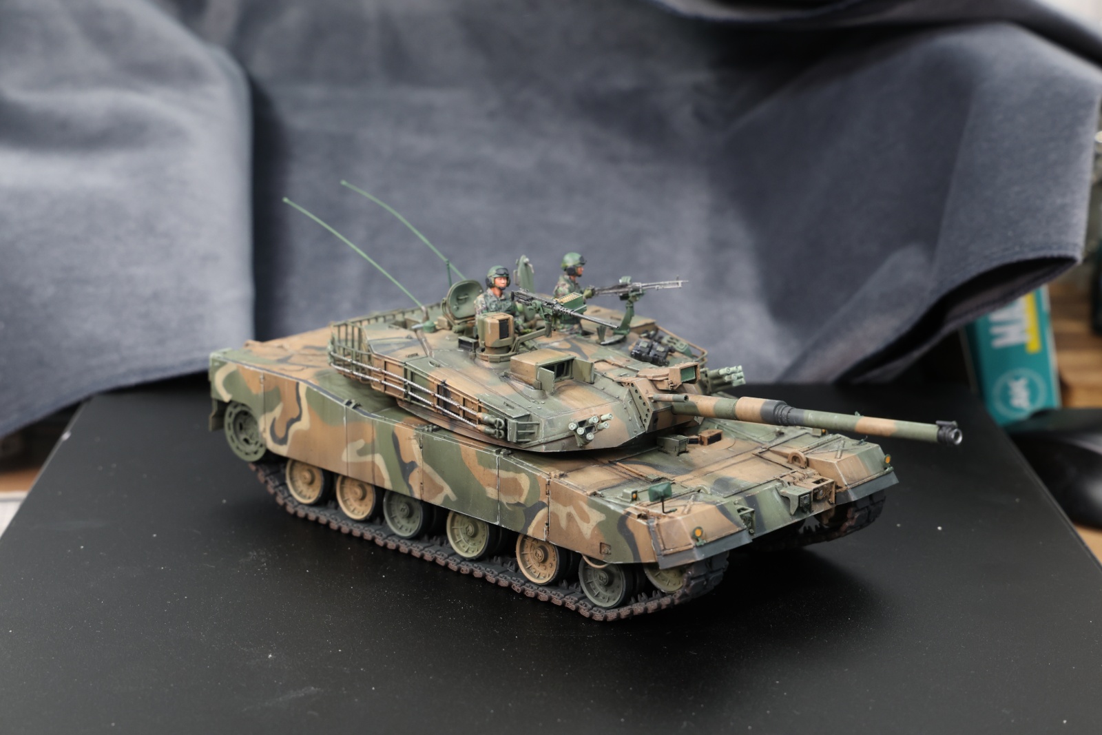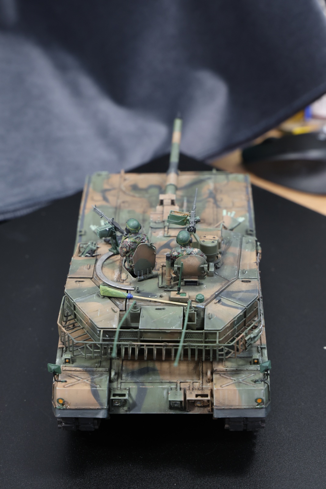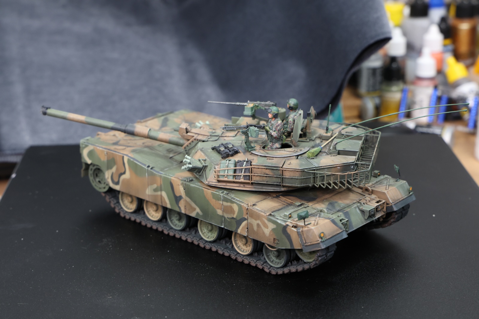 한국군 위장무늬 데칼은 최대한 헤어드라이로 가열하고 마크소프트로 녹이는 반복된 작업이후 간단히 워해머로 유명한 시타델의 널 오일의 대채호환품인 투씬코트의 오블리언 블랙워시로 하였는데, 효과가 상당히 좋았습니다.