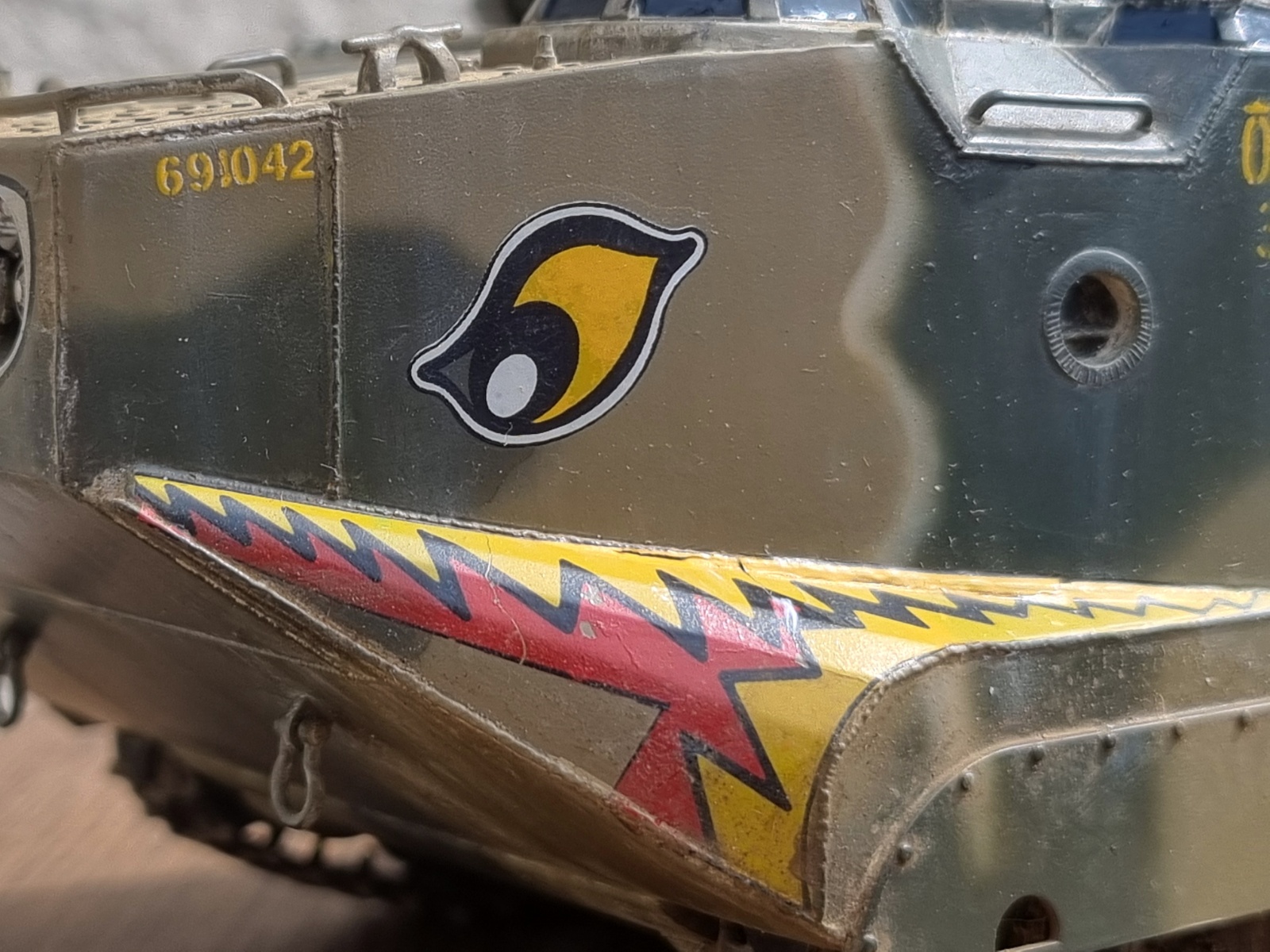 용접선, 라이트, 총열(이건 분실로 인해 ㅜㅜ) 외엔 키트 그대로 스트레이트 작업이며, 도색은 제 나름의 80년대 느낌의 색 조합과 프리핸드로 칠했습니다.