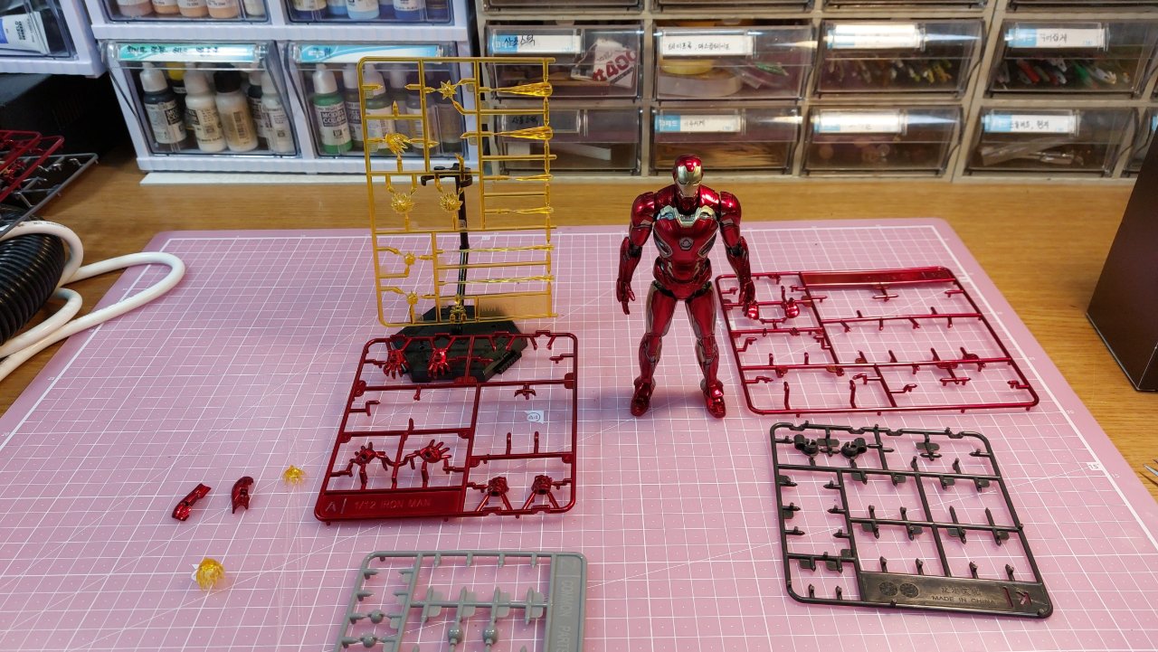 *단점: 아이언맨의 가장 포인트가 되는 가슴 중앙부의 빛나는 심벌이 성의 없이 표현 되었다는 것입니다. 뭐, 작은 키트이니 LED까지는 아니더라도 투명 부품정도는 넣어줘도 좋을 것 같은데 말이죠.