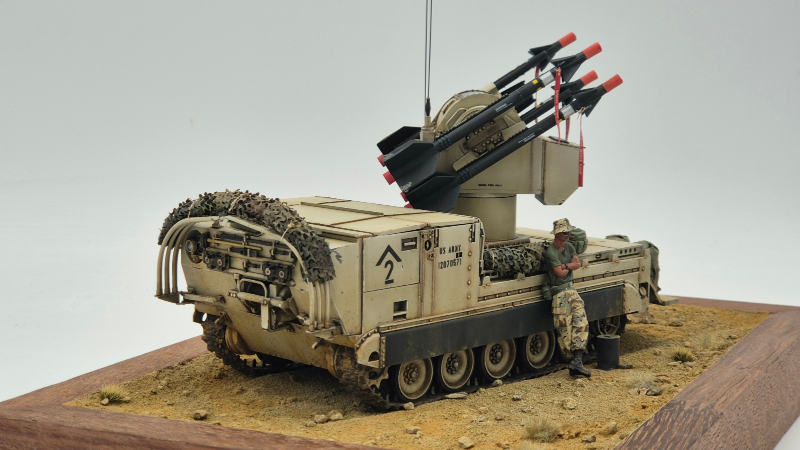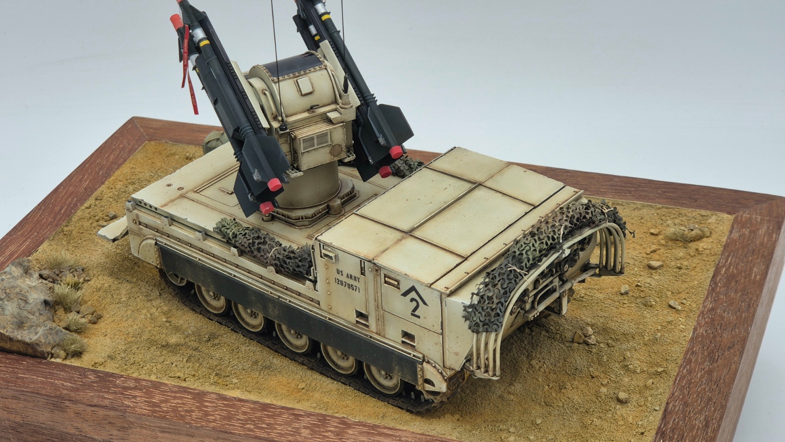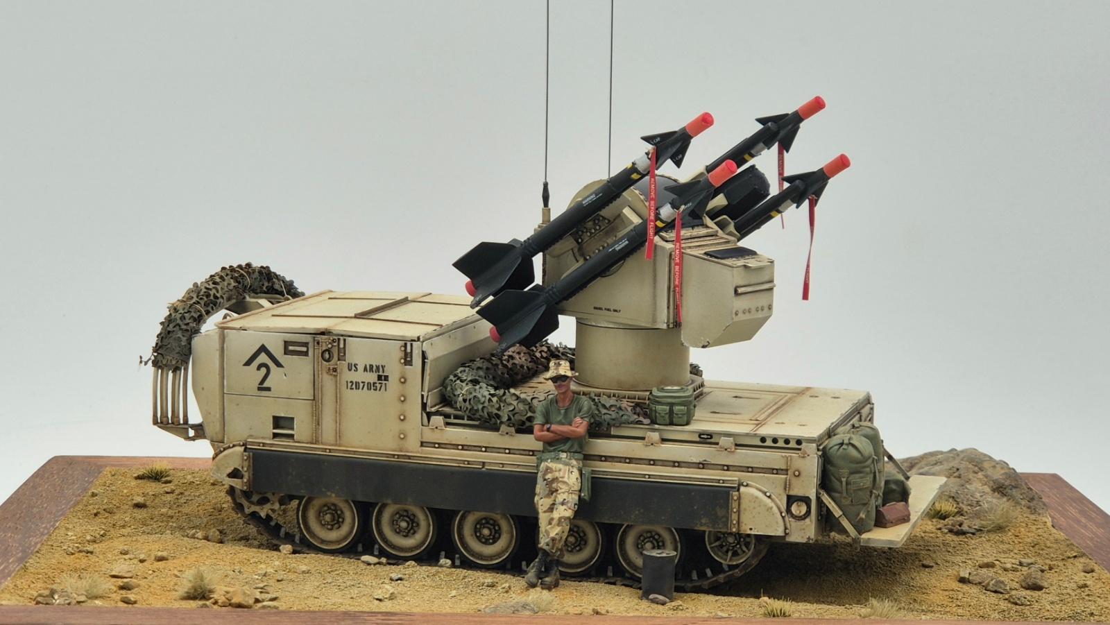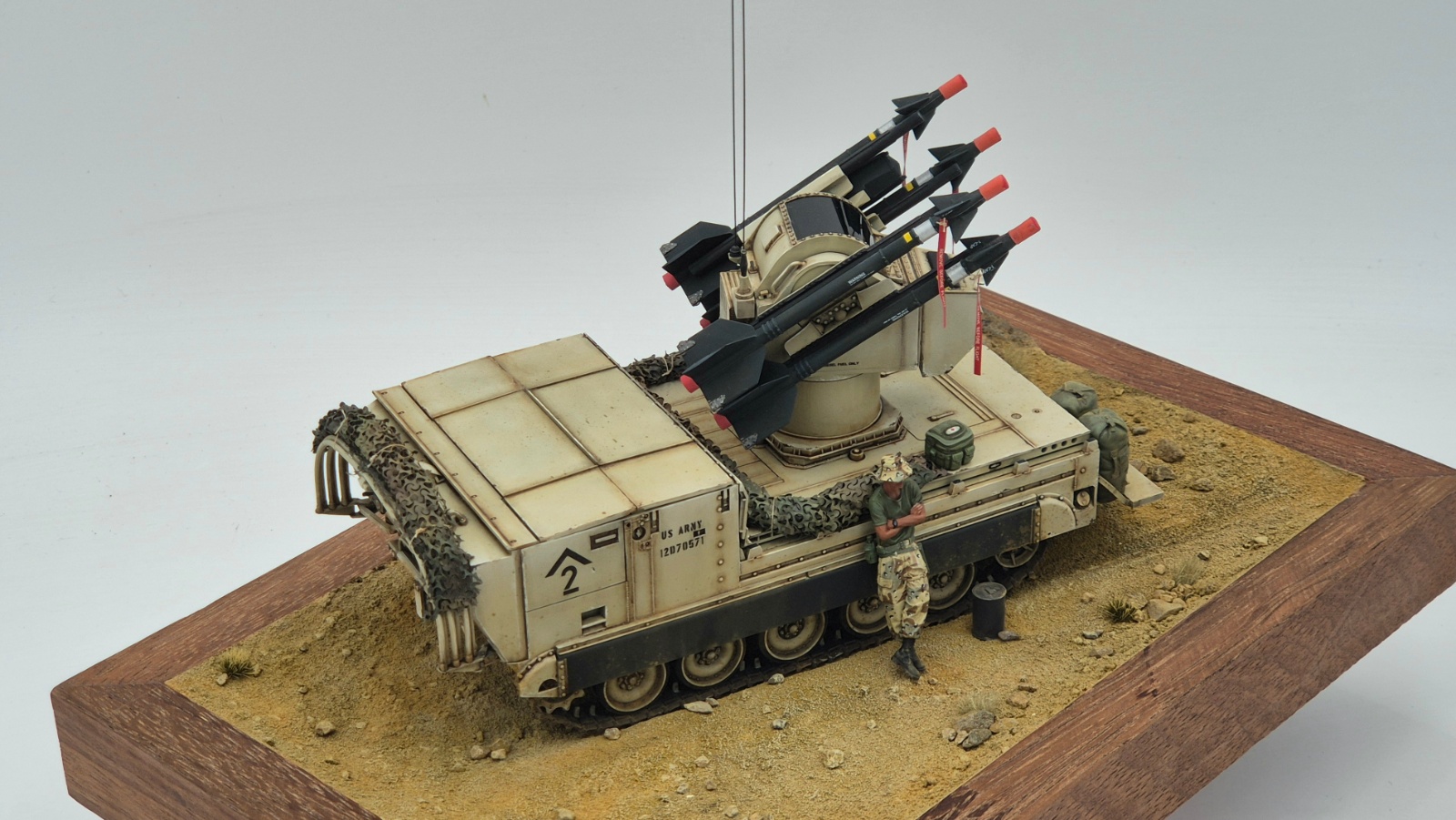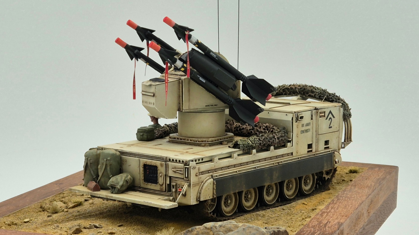 오픈카인 M730A1이지만 내부 디테일이 별로인관계로 닫은상태로 제작하였습니다. MIM-72 Chaparral 미사일은 디테일도 별로고 데칼도 별로라 그냥 만들기엔 심심해서 보호캡도 만들어주고 빨간끈도 달아줬습니다. 미사일 터렛 콕핏은 클리어 블랙으로 도색해서 내부가 보이게해줄 생각이였는데. 안보이네요 ㅠㅠ