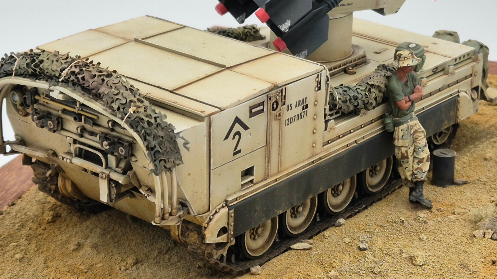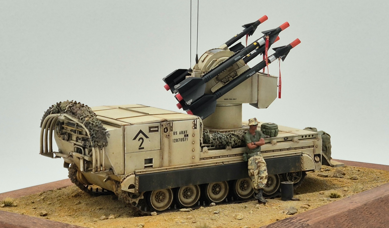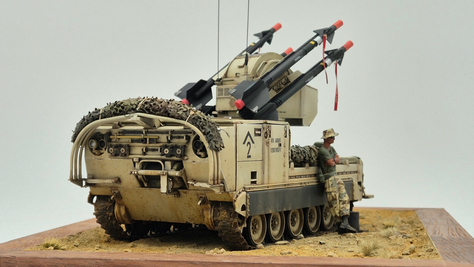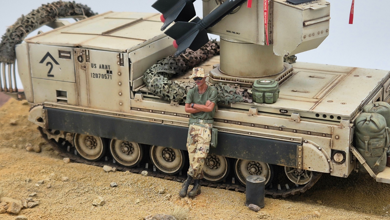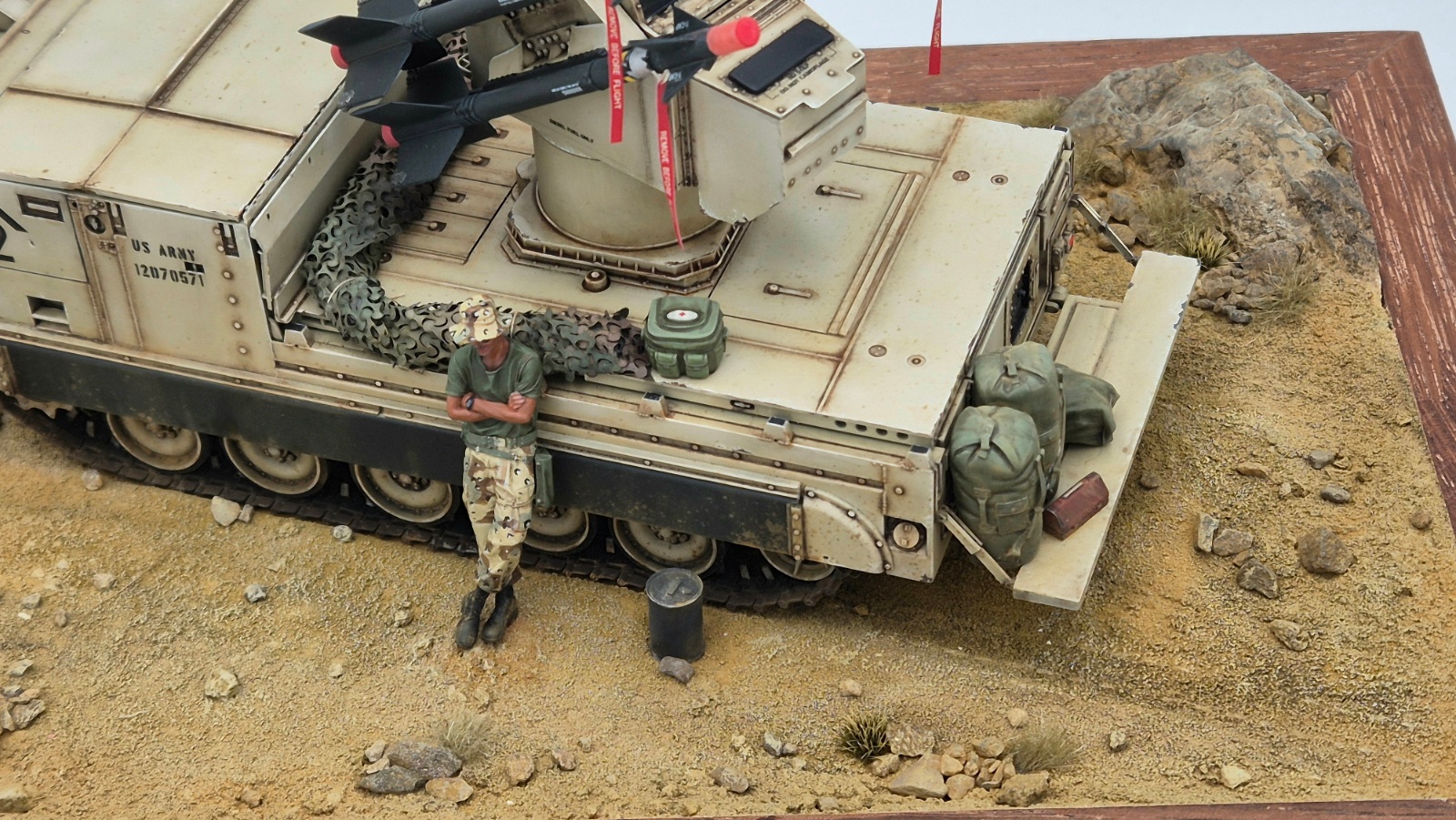 오픈카인 M730A1이지만 내부 디테일이 별로인관계로 닫은상태로 제작하였습니다. MIM-72 Chaparral 미사일은 디테일도 별로고 데칼도 별로라 그냥 만들기엔 심심해서 보호캡도 만들어주고 빨간끈도 달아줬습니다. 미사일 터렛 콕핏은 클리어 블랙으로 도색해서 내부가 보이게해줄 생각이였는데. 안보이네요 ㅠㅠ
