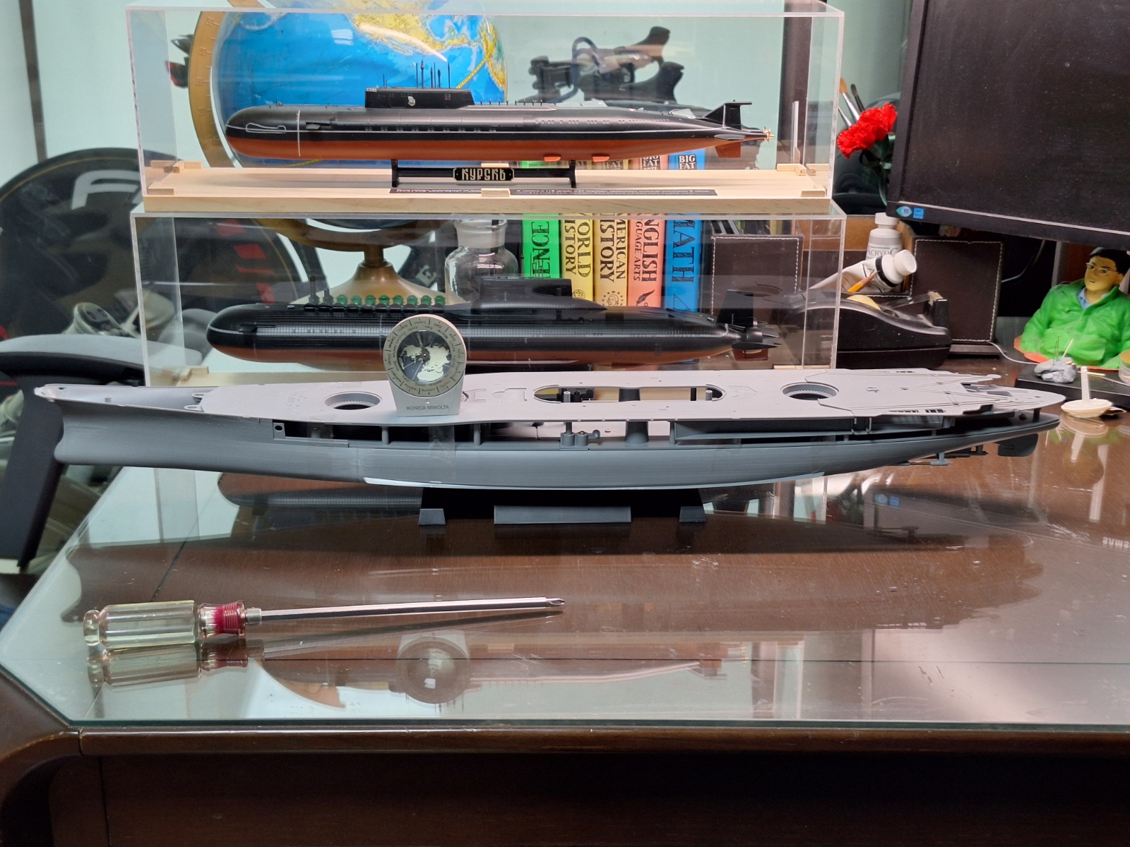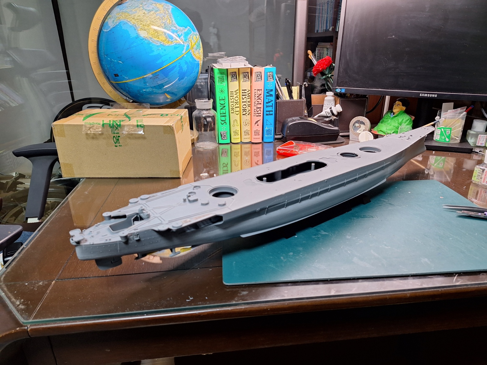 지난 번에는 하부 선체만 조립하고 대충 하부 선체의 접합선만 수정하였었는데, 오늘 토요일 좀 진도를 빼서,