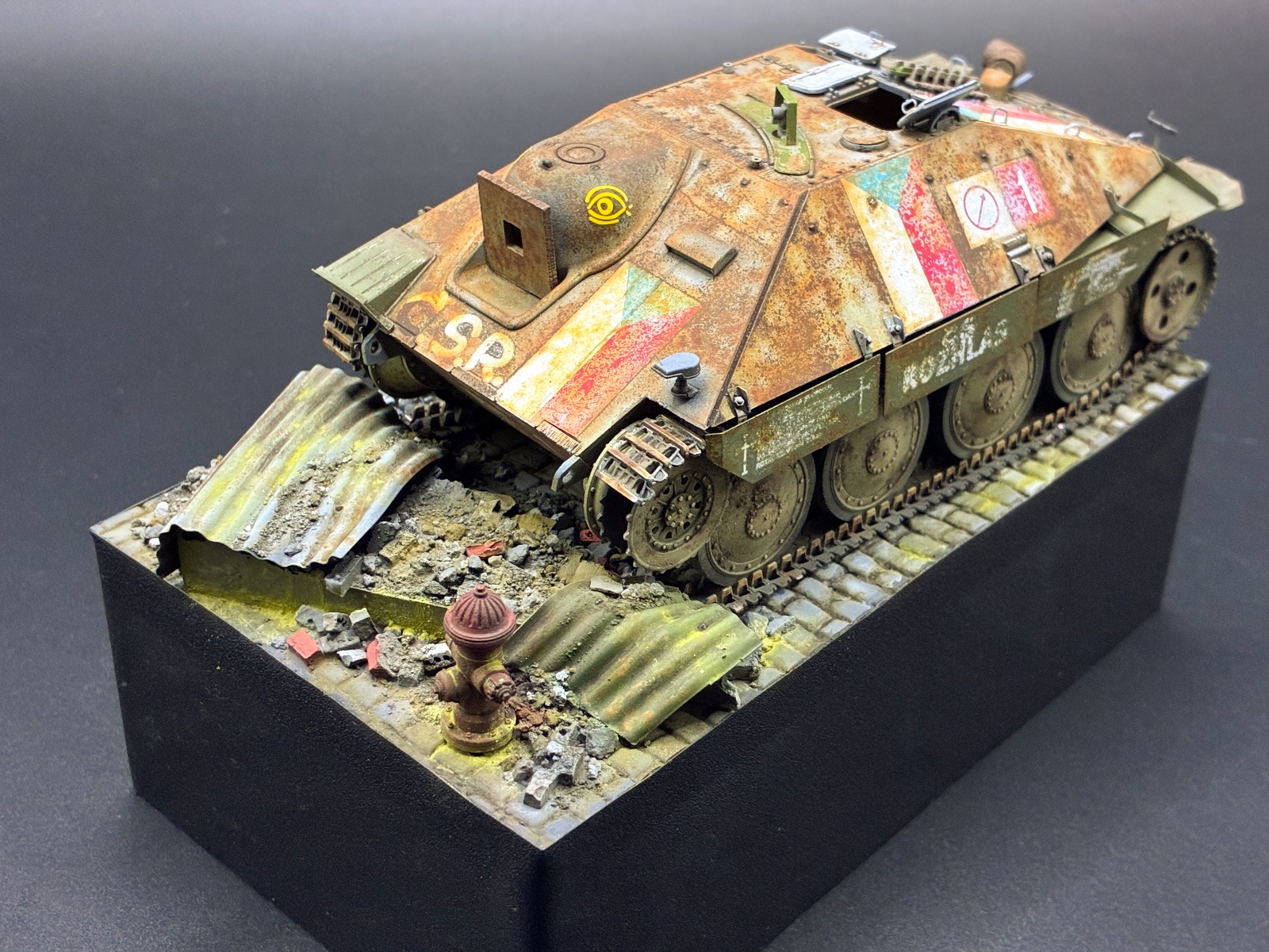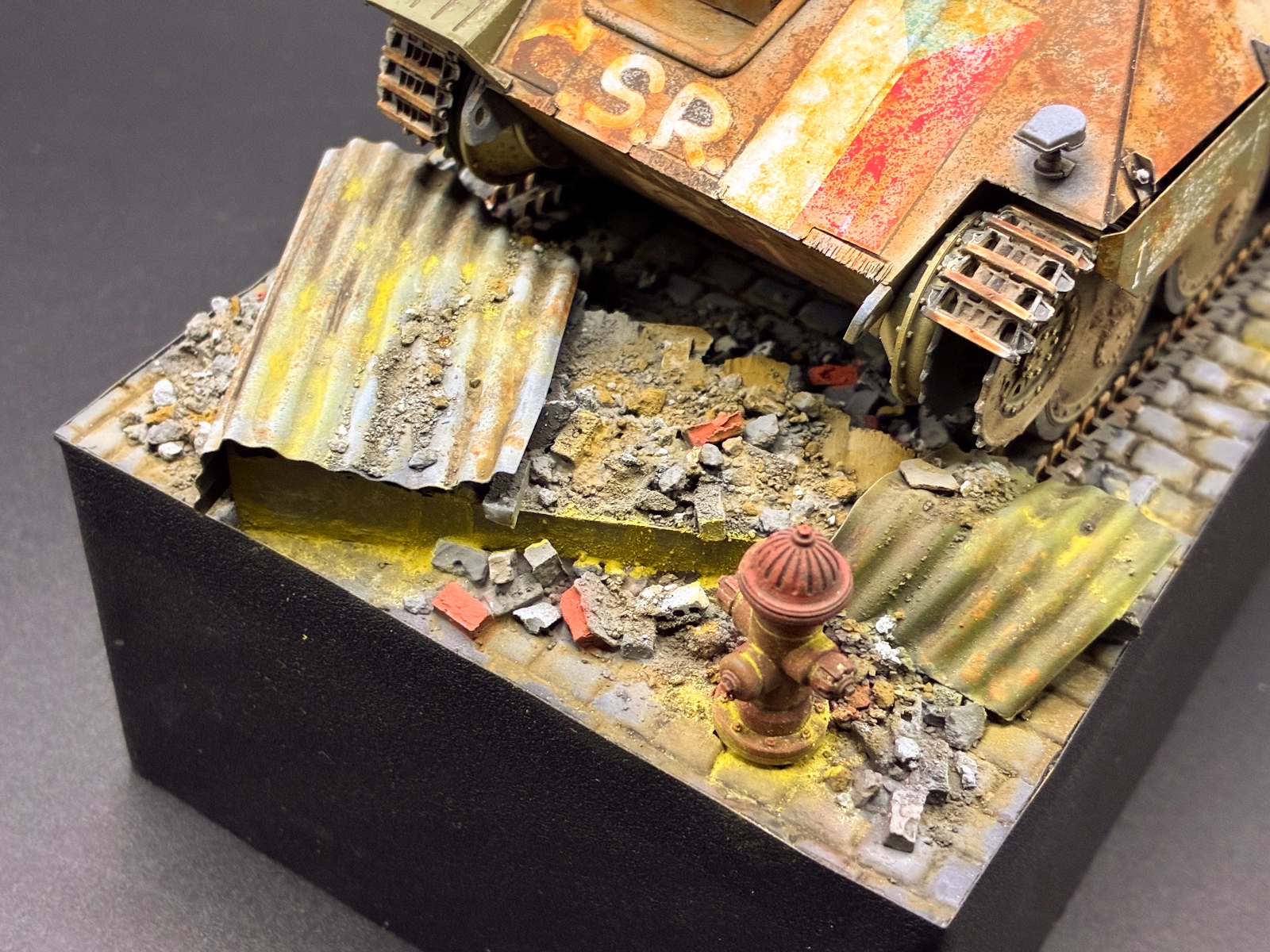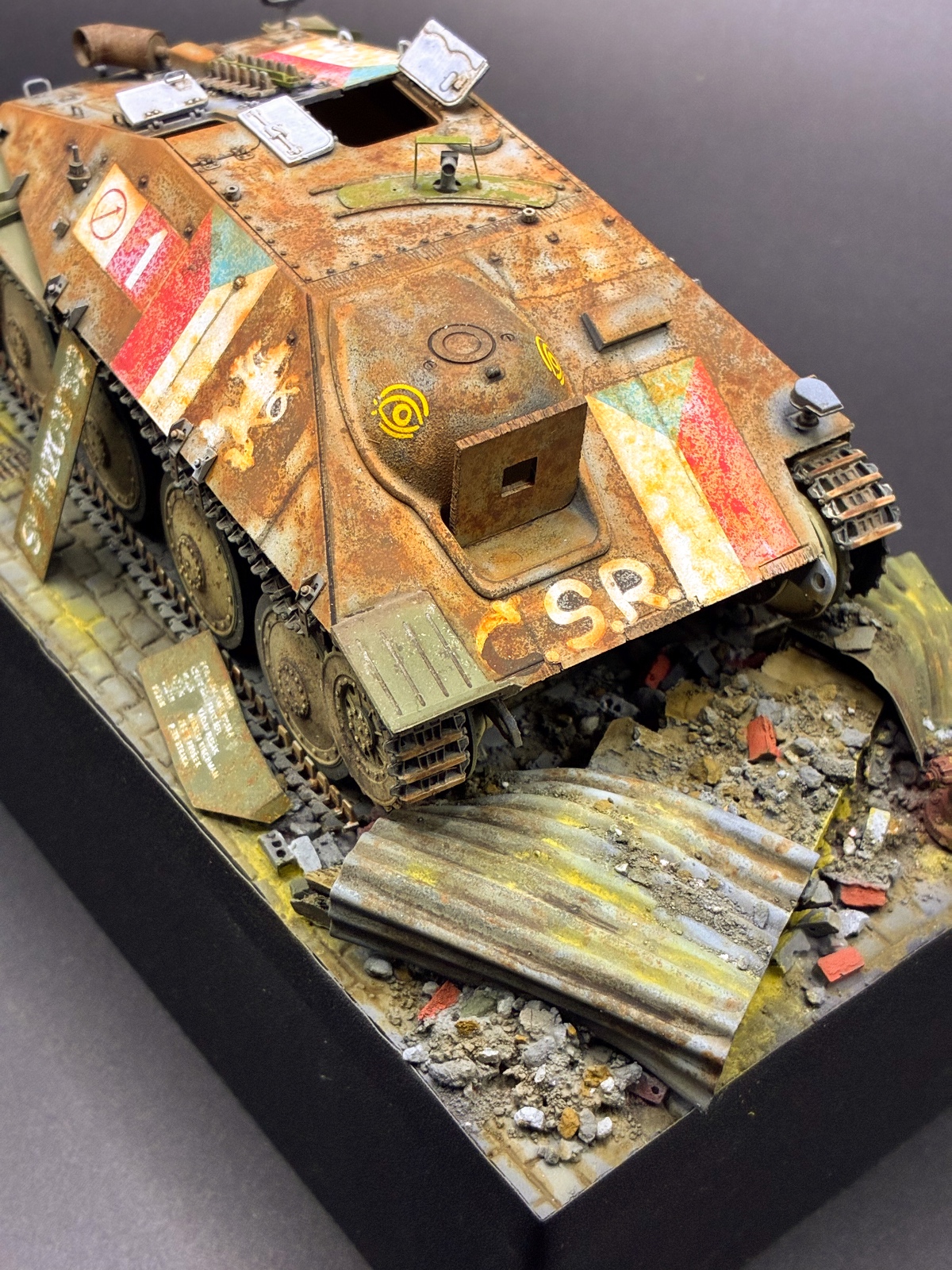 프라하 봉기때 사용한 차량이라 베이스는 잔해가 깔린 도심지 느낌을 내고자 노력했습니다.