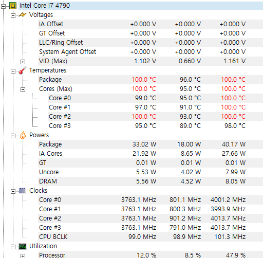 그래서 컴퓨터 내부 온도를 측정하는 프로그램으로 보니 이게 왠걸.