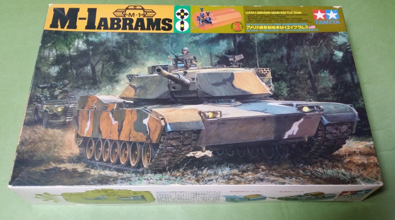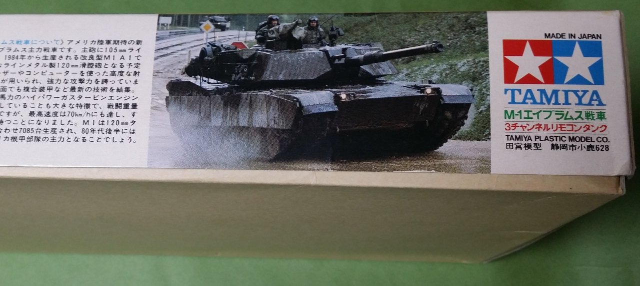 타미야의 3채널 모터라이즈드 유선 리모콘 탱크 M-1 에이브람스 입니다.