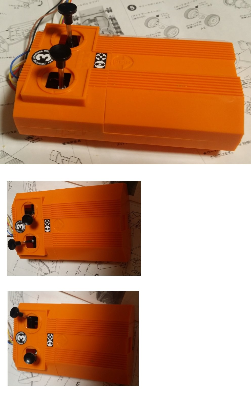 제가 가지고 있는 주행을 하고 양팔로 물건을 들어올리는 로봇 테크맨1의 리모콘인데 아카데미에서 3채널 탱크 에이브람스와 게파드를 발매했을때 이 리모콘이 들어있었습니다.