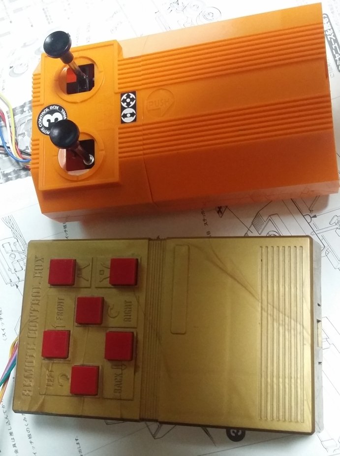 테크맨1의 리모콘을 떼어내고 컨넥터 잭으로 타미야 리모콘을 연결해서 작동시키면어떤 움직임을 할까 궁금해집니다.