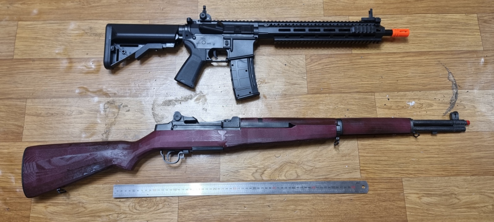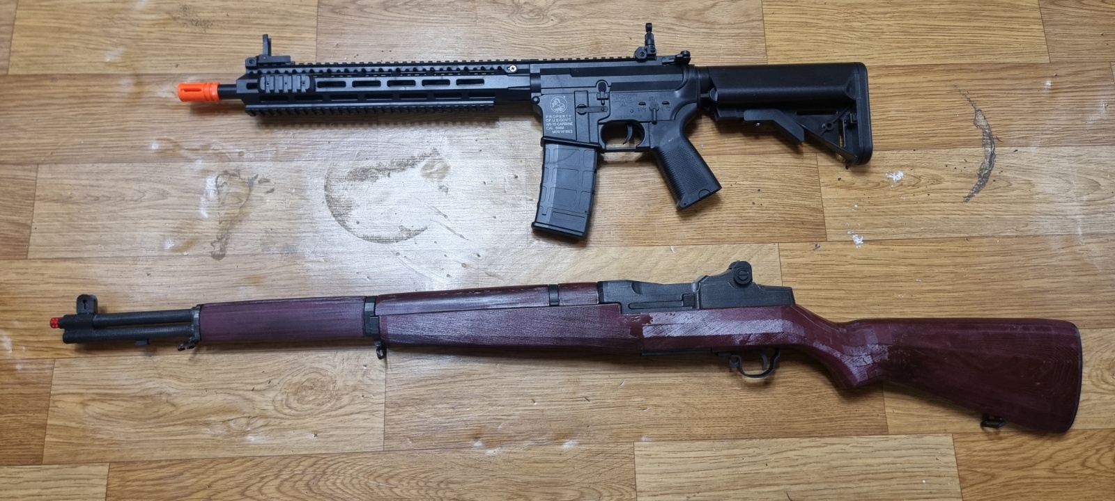당근에서 만원주고 얼릉구매한 아카데미 AR-15 에어소프트 소총과 비교사진입니다