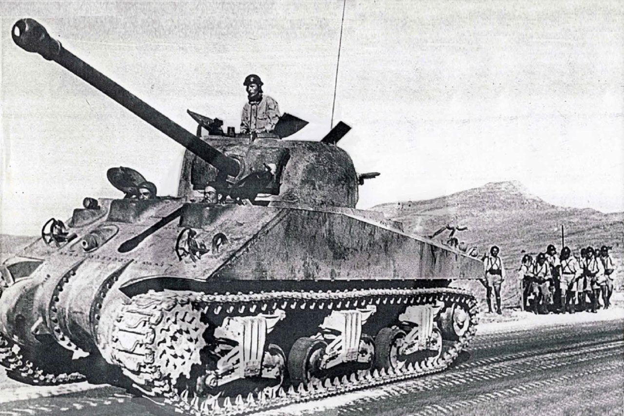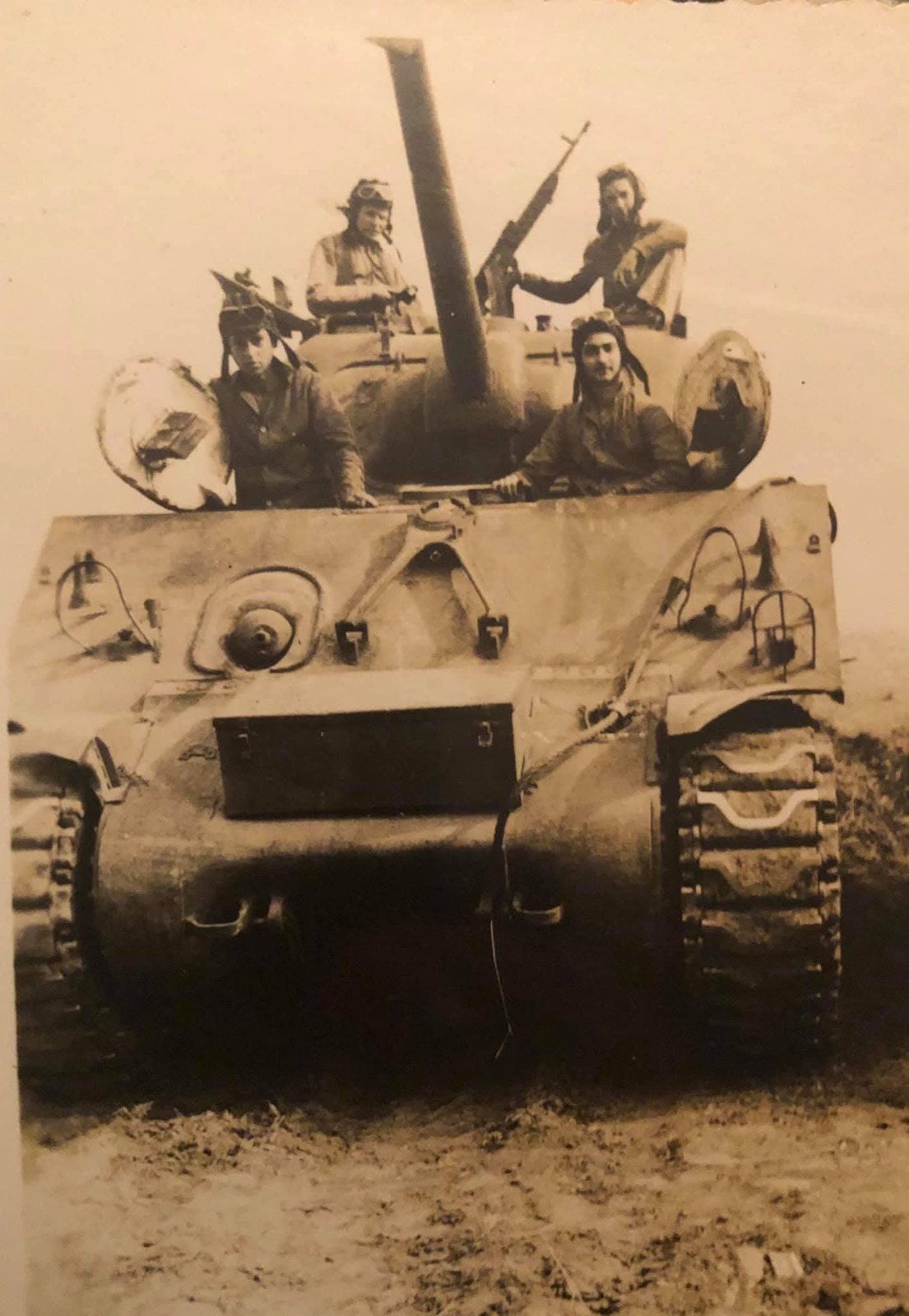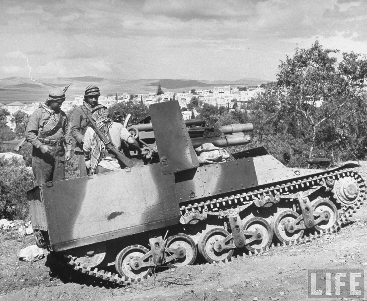 독일제 MG34, 미제 분소대 무전기, 미제 탄입대, 정체모를 장갑차, 여성복 상의에 미제 헤링본 면 전투복바지, 개인 취향의 샌들.. 한장의 사진에 1차 중동전이 다 있네요