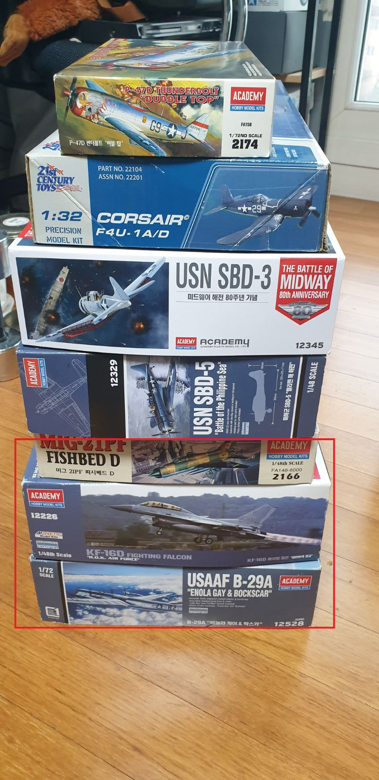 특이사항! 아래 세 제품(mig-21, kf-16d, b-29)는 조립 중단 키트이나 누락 부품은 없음.