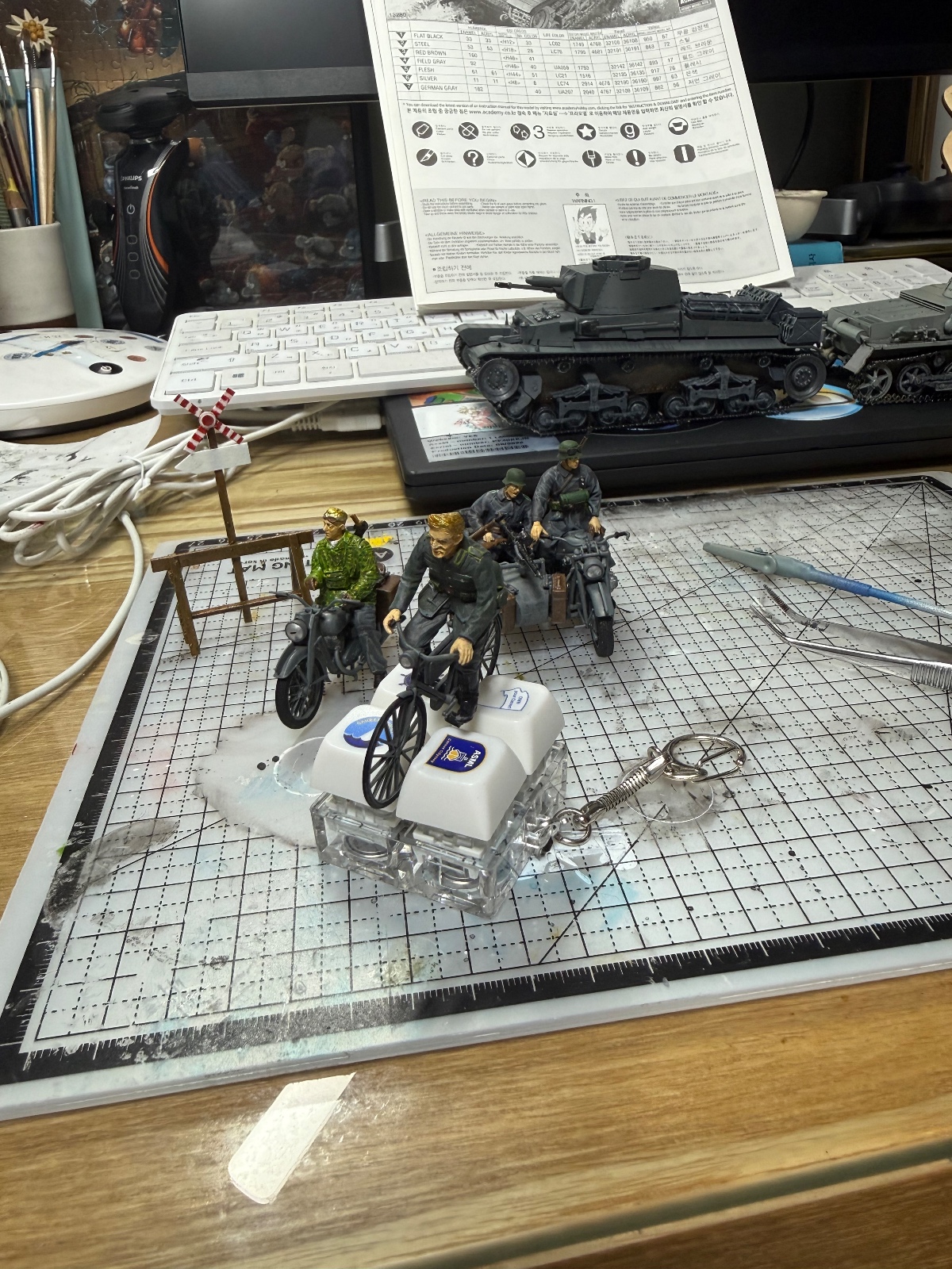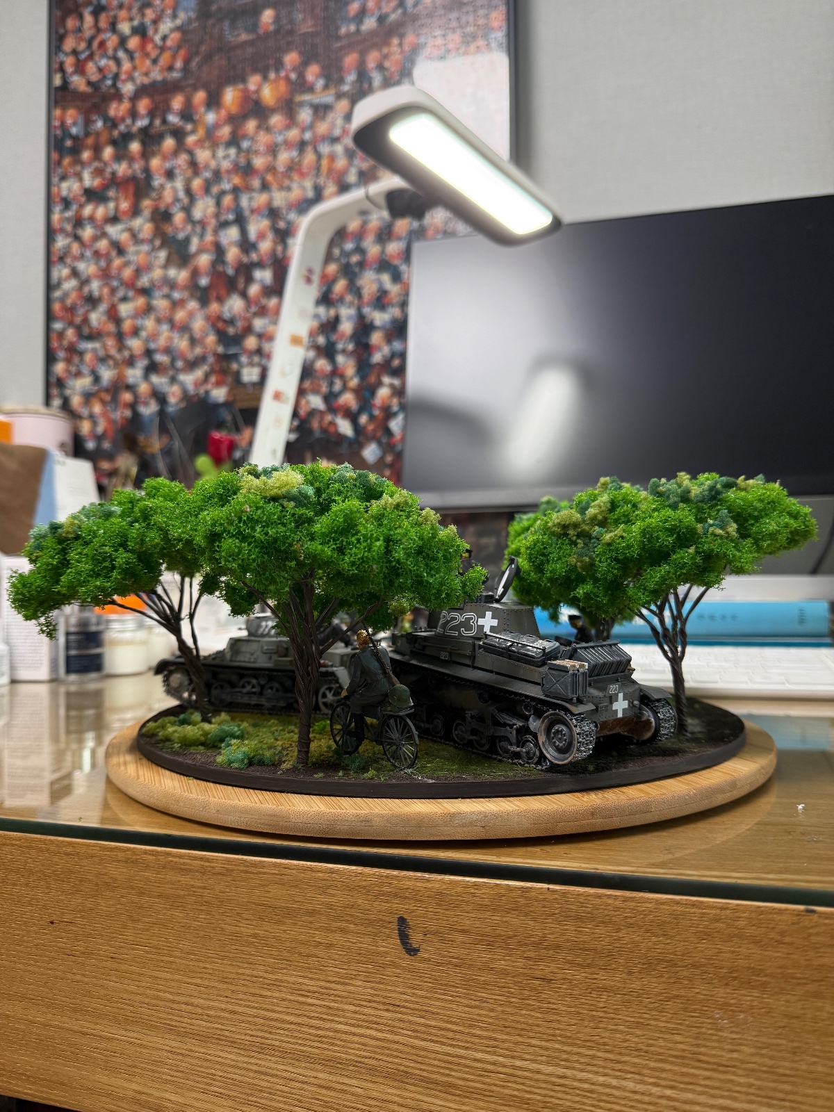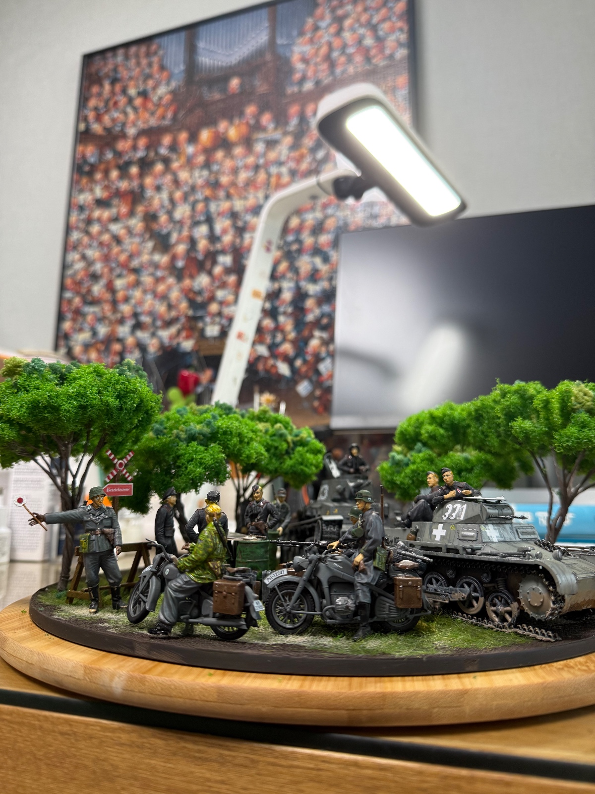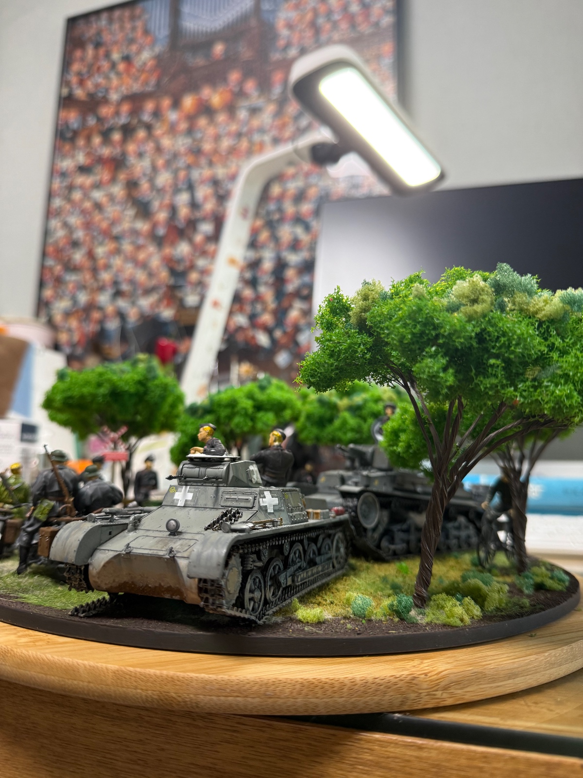 1/35 아카데미 1호전차와 35t로 작은 디오라마를 한번 만들어봤습니다 주제라기엔 머하지만 2차대전 초기 전차기동훈련전에 작전지역 통제라는 상황을 한번 상상해 보았고 그에따라 제목은 독일어로 “Not Yet” 으로 해보았습니다 여전히 실력은 부족하고 산만한 디오라마지만 자꾸자꾸 연습해보겠습니다.