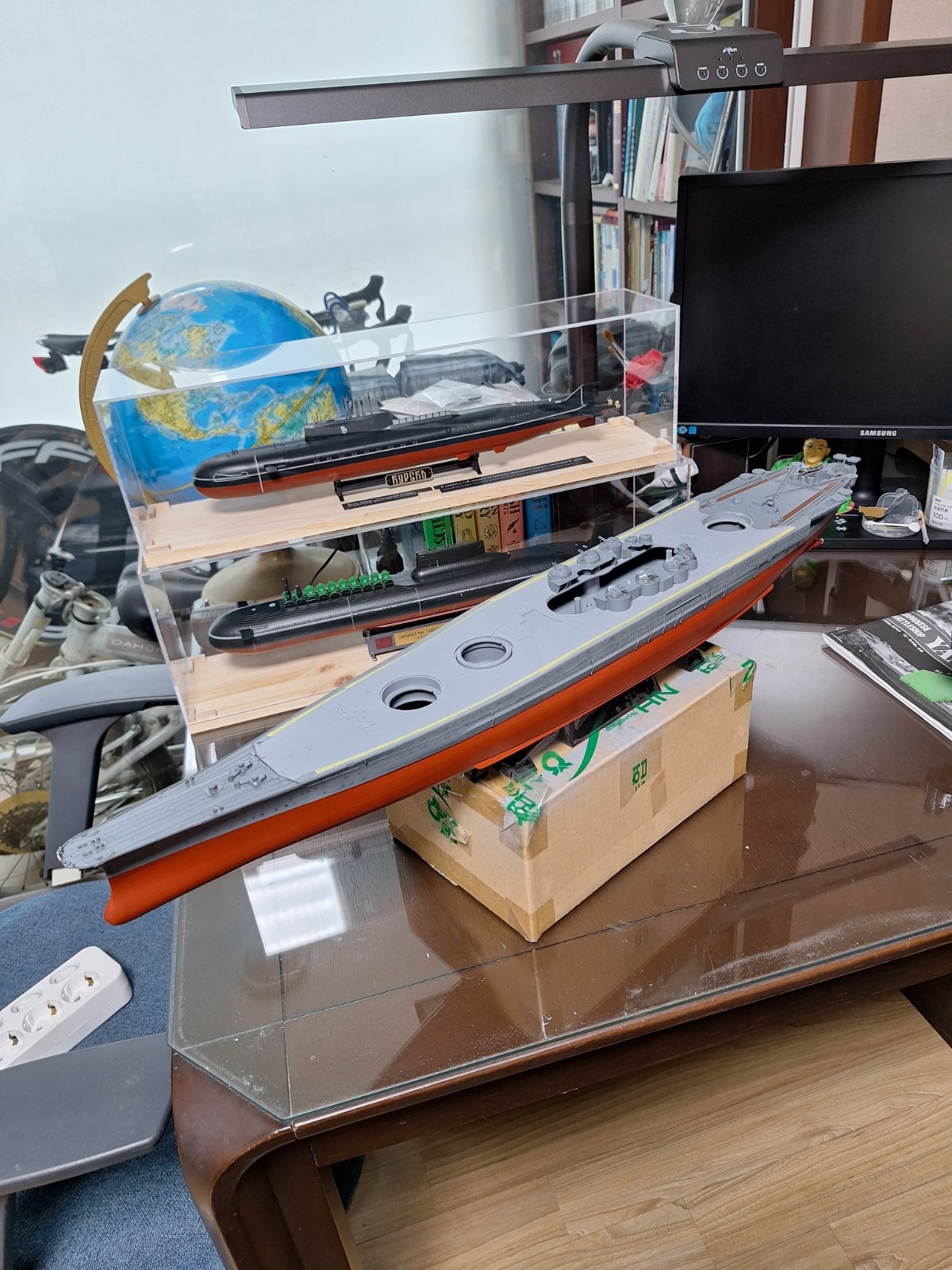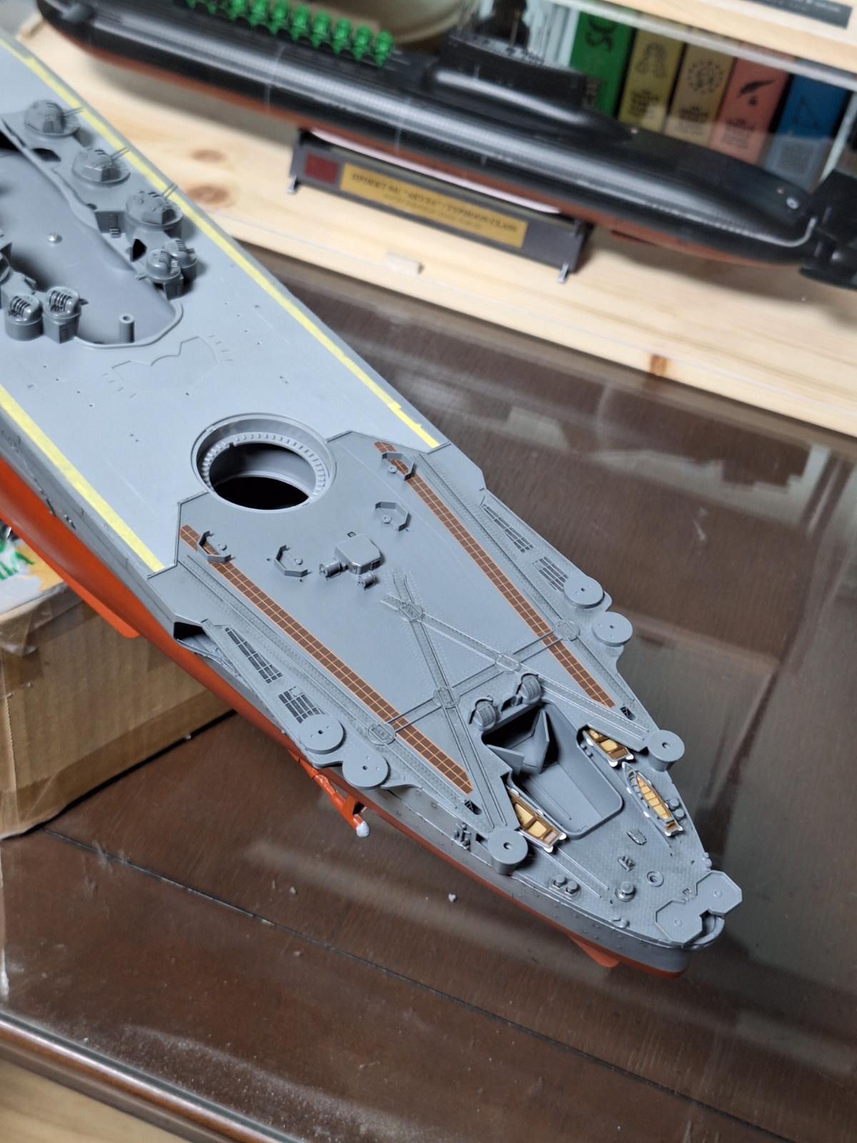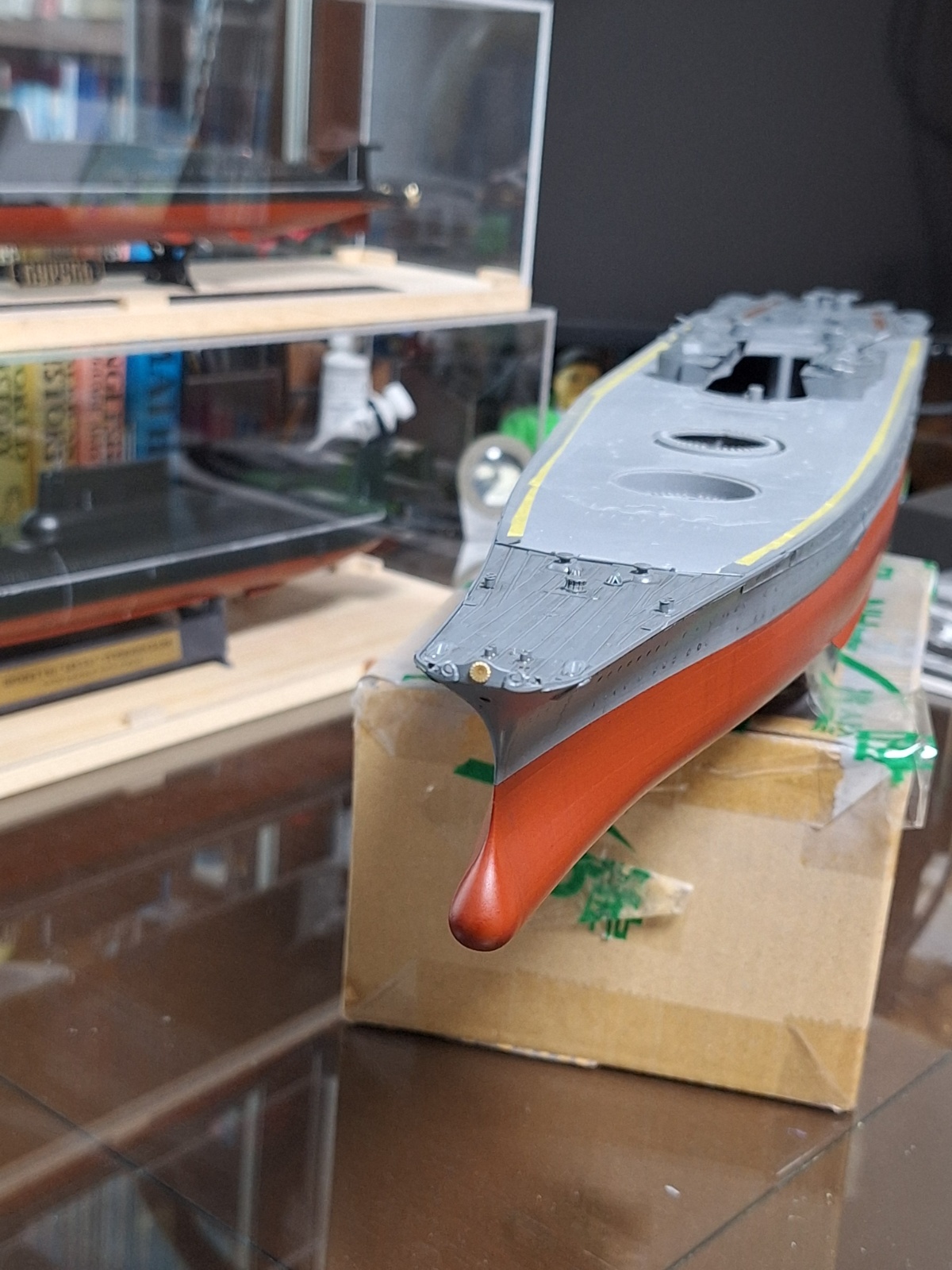 마감하여 선체 제작은 마무리가 됬습니다. 함선 후미의 리놀륨 보드? 부분의 스티커도 부착해 줬고요.