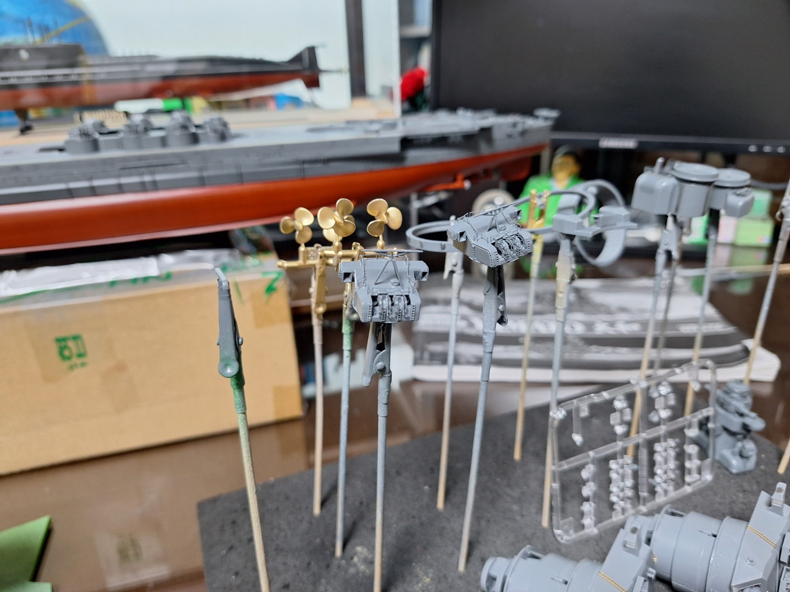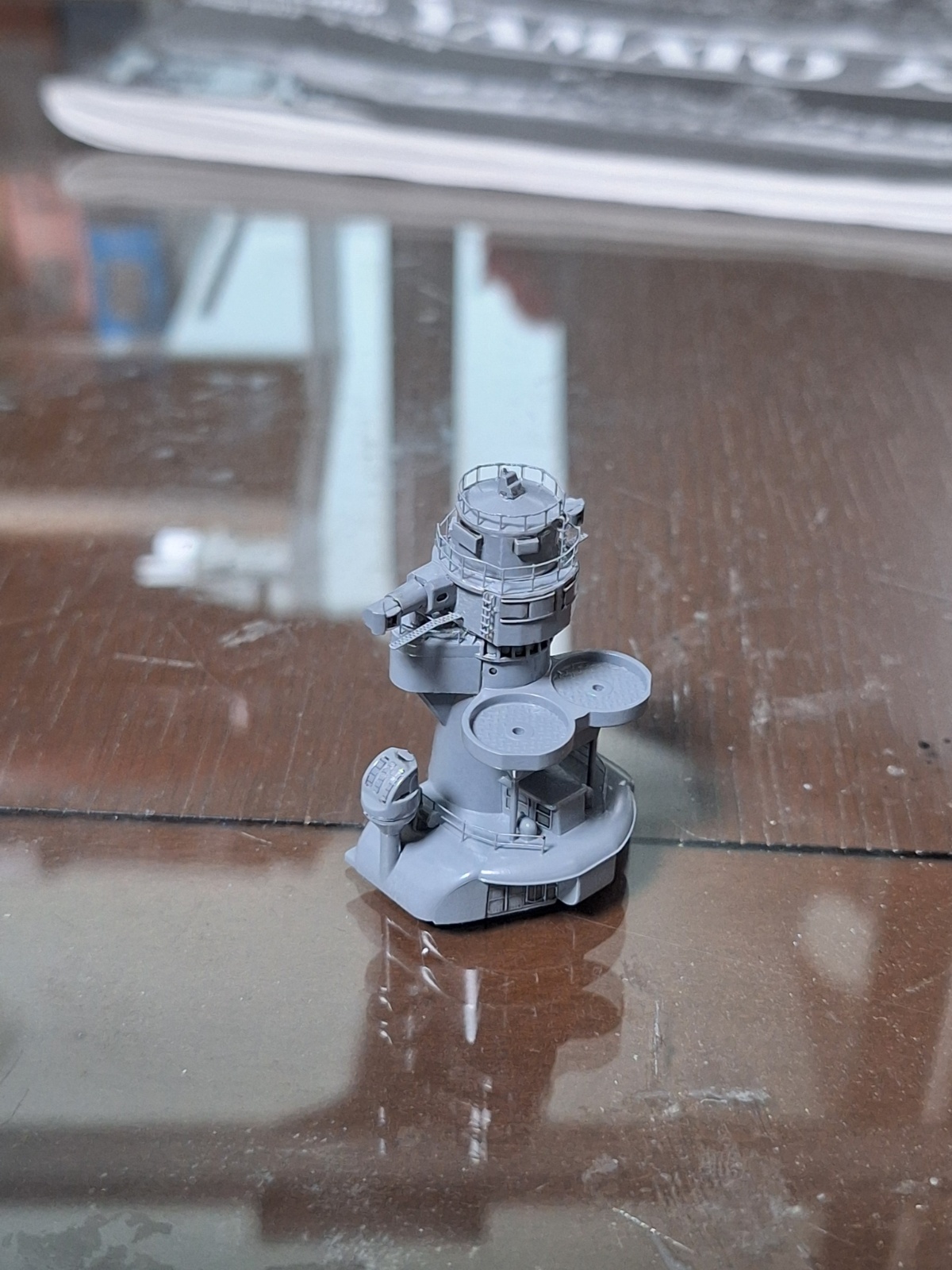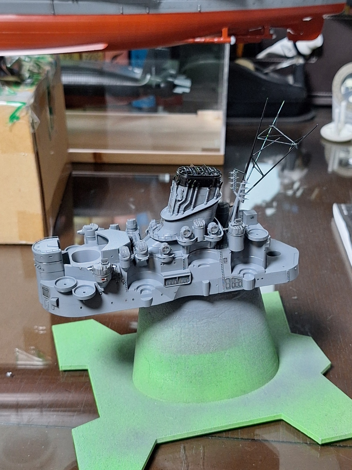 연돌 주위에는, 별도로 제작, 도색해 둔 6개의 서치 라이트와, 메인 마스트를 부착해