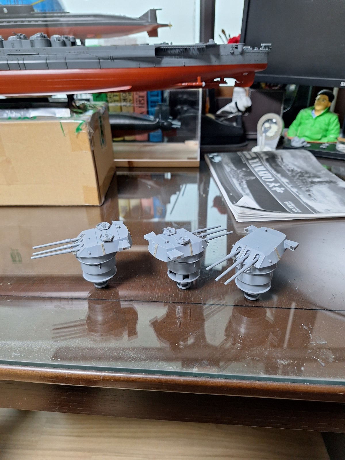 이전에 기본 조립이 끝난 부포 2개는 함체 색으로 도색하여 건조 중입니다. 포신은